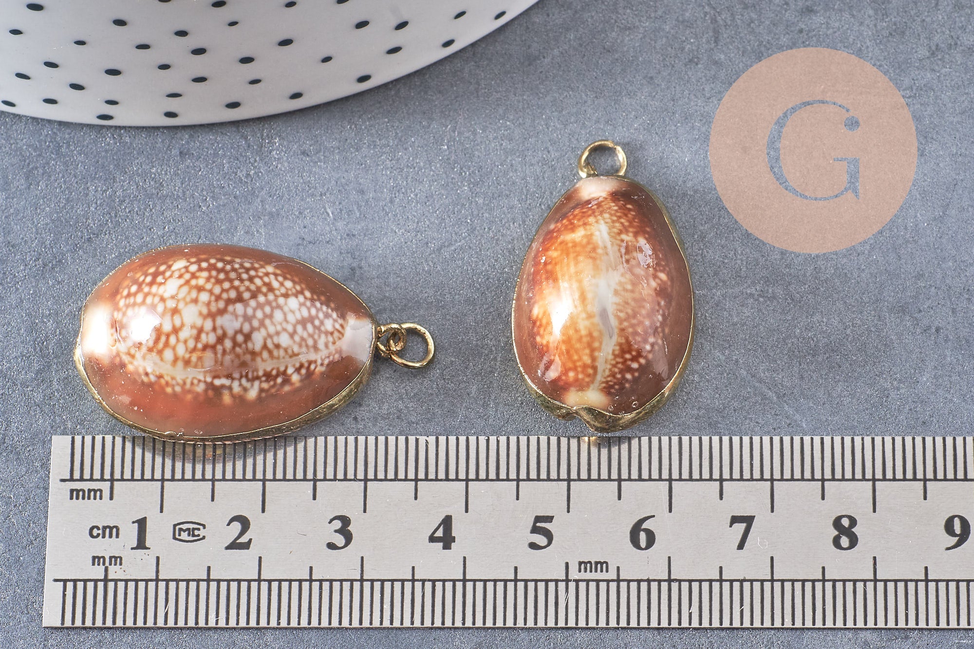 Un élégant pendentif doré en coquillage naturel de type porcelaine,