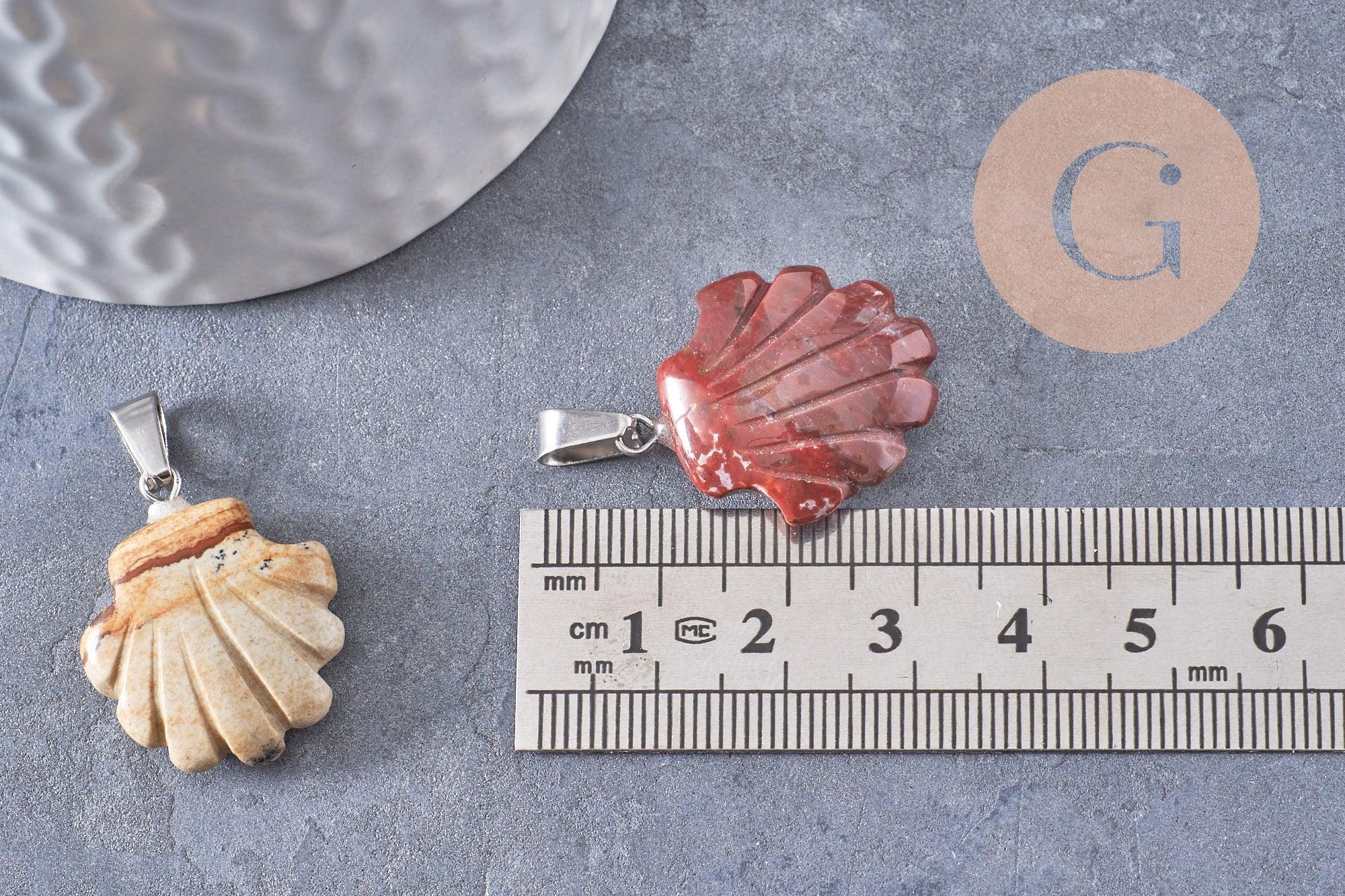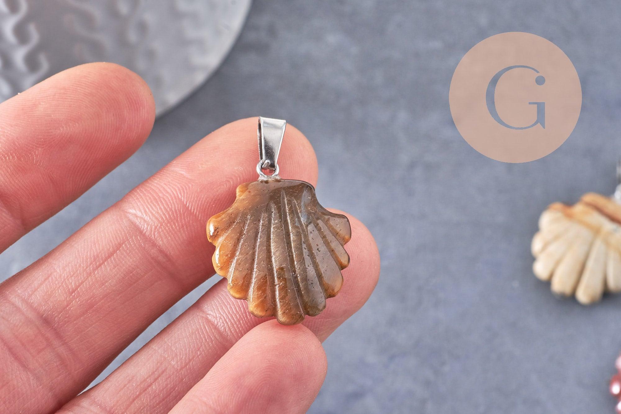 Ajoutez une touche marine et élégante à vos créations avec ce pendentif en forme de coquillage, décliné en différentes pierres naturelles et de synthèse.