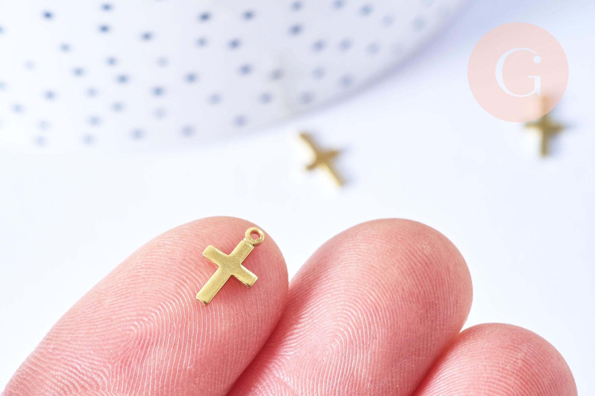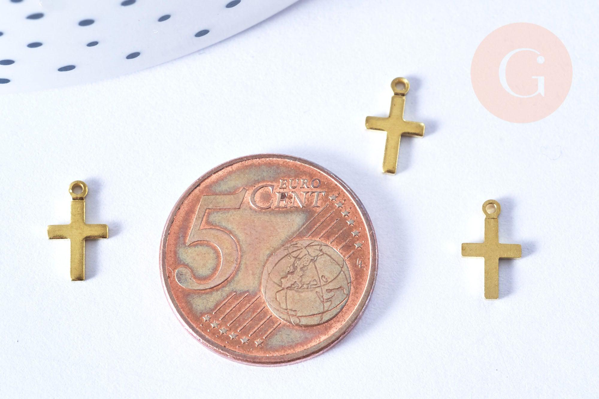 EP-Pendentif croix laiton brut 10mm x5 (G6446)