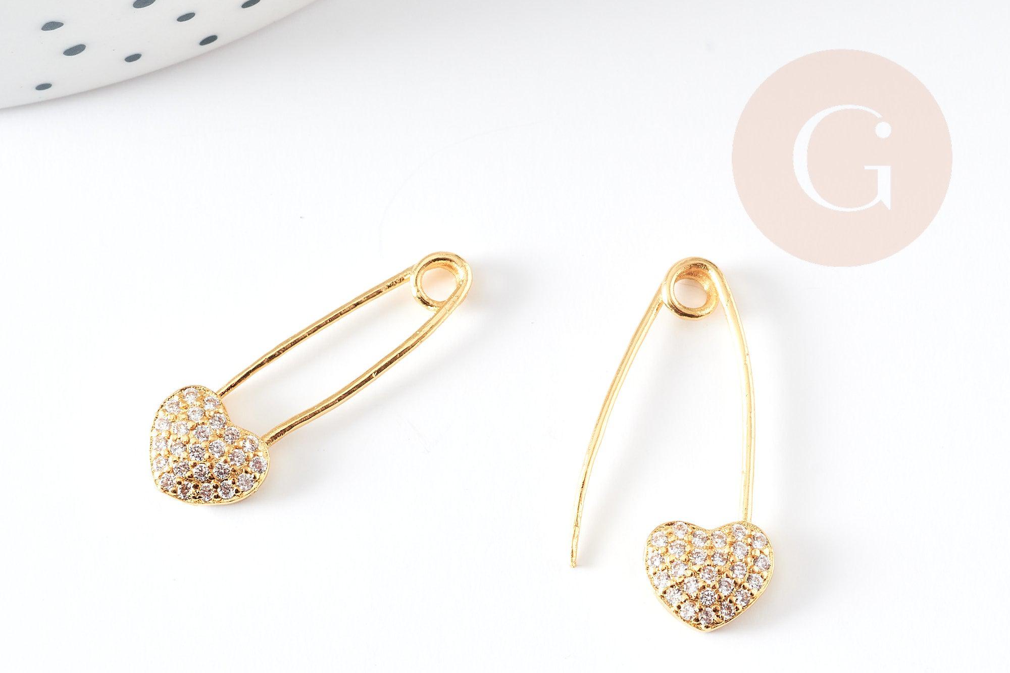 Exprimez l'amour et l'originalité avec notre pendentif en forme d'épingle à nourrice cœur, fabriqué en laiton doré 18k et agrémenté de cristaux. D'une taille de 26.5mm, ce pendentif unique combine un design contemporain avec une touche romantique, le rendant idéal...