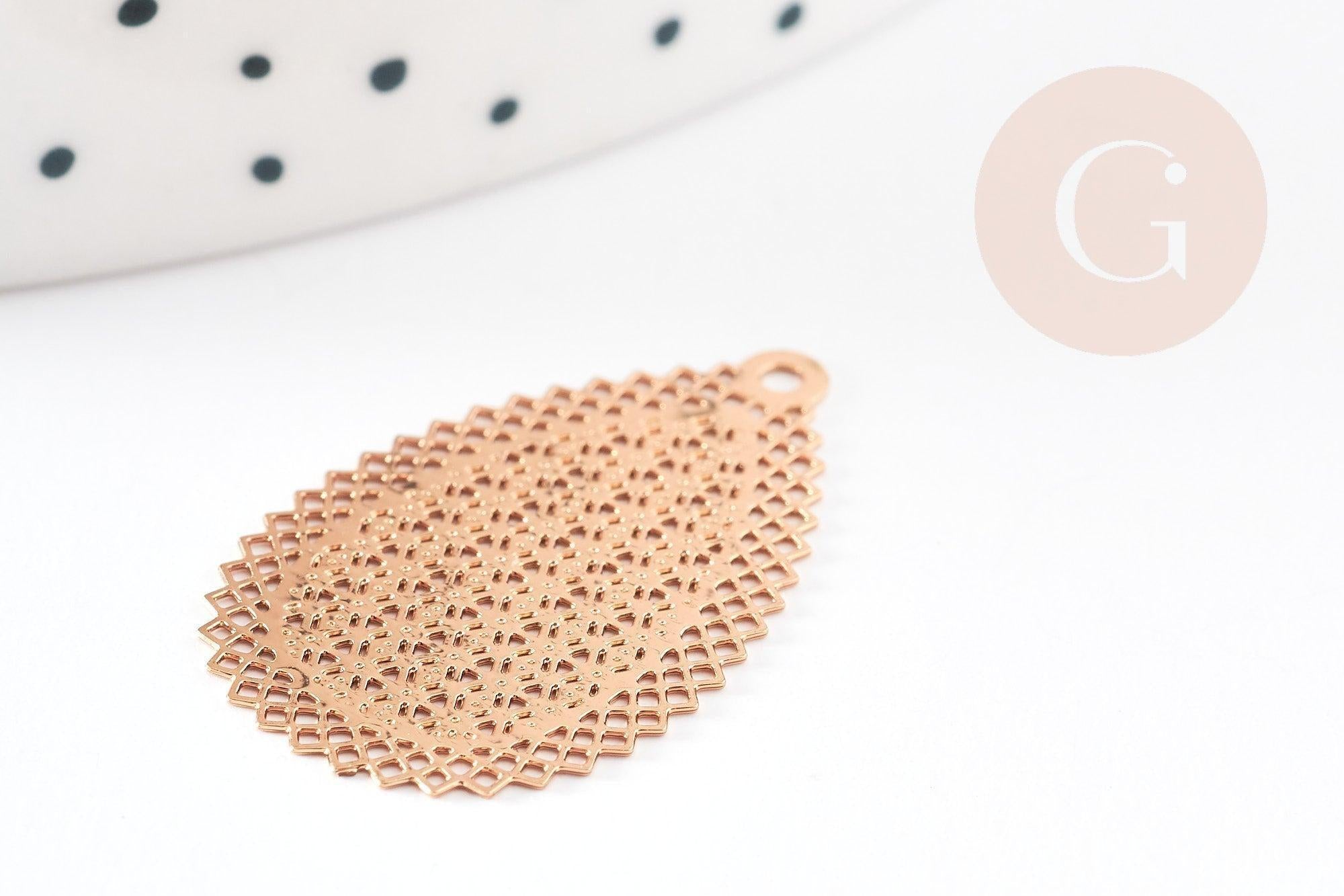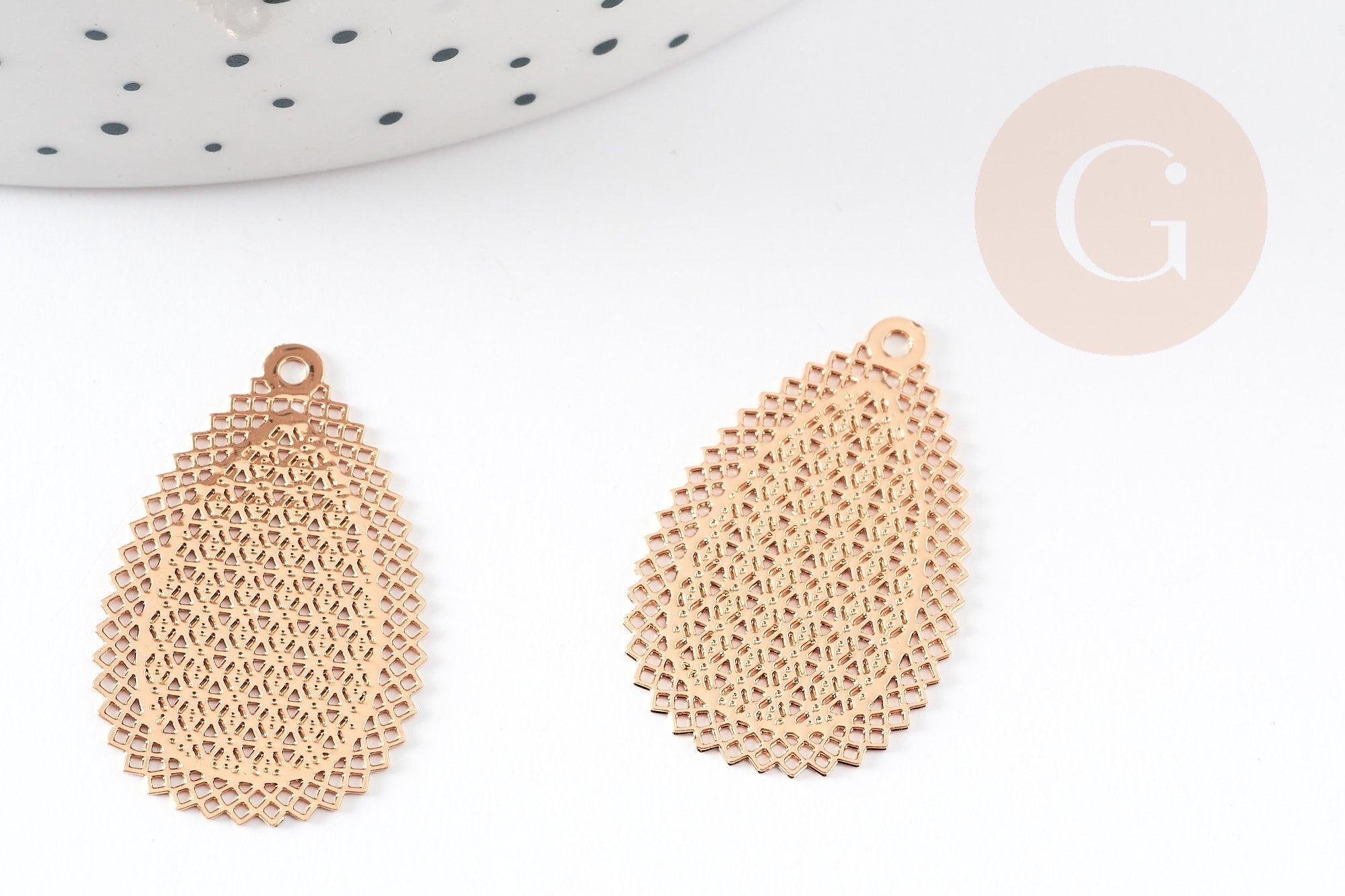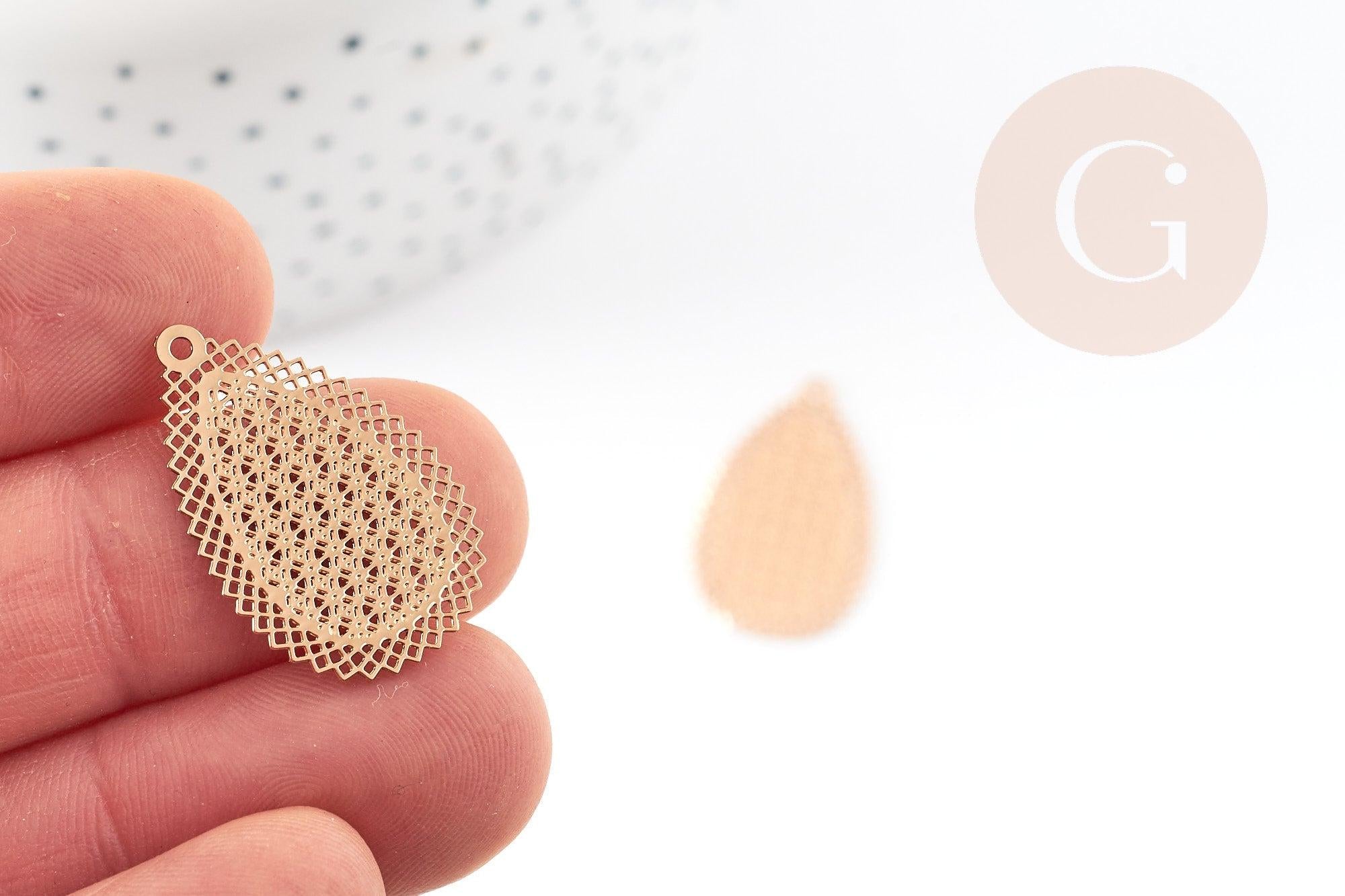 Pendentif estampe filigrane goutte géométrique laiton doré 26mm, Pendentif très fin et léger pour création de bijoux DIY x2 (G9203)