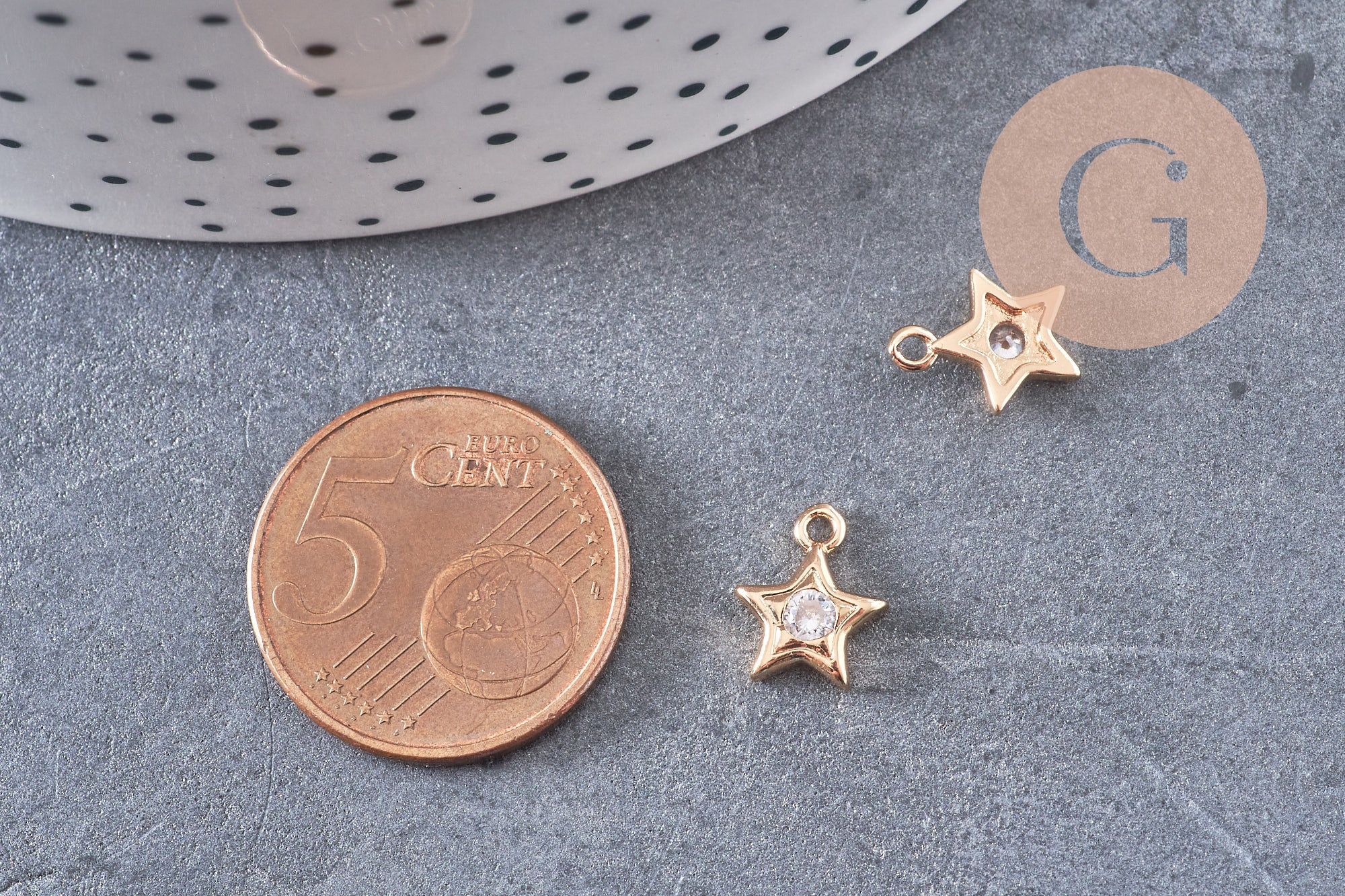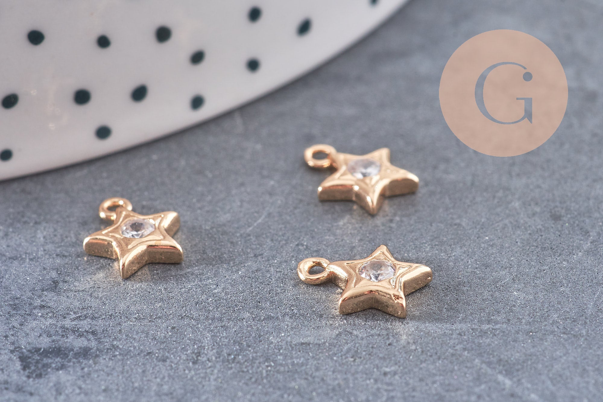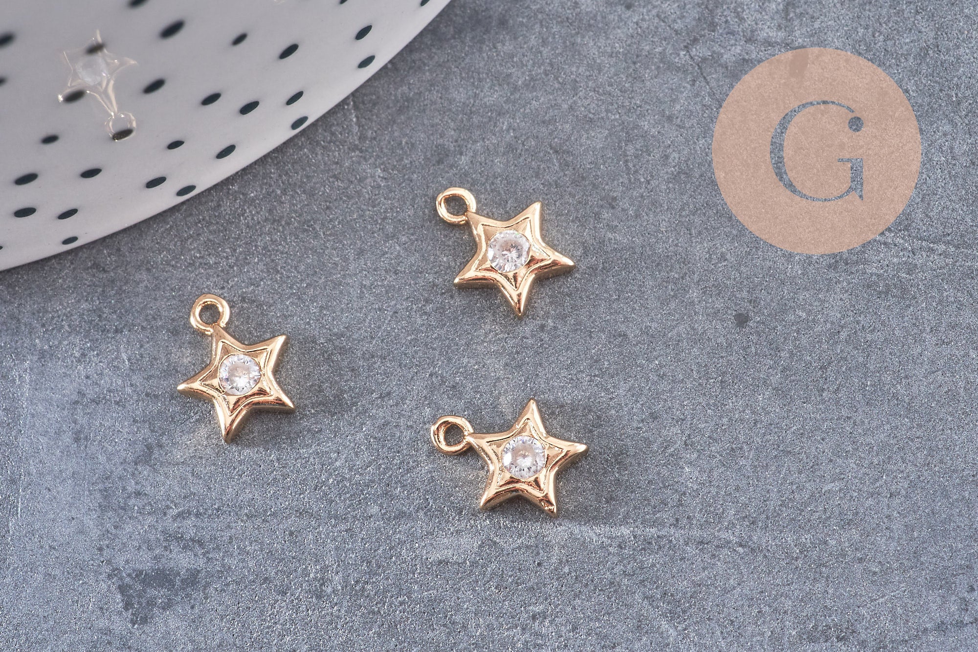 Un pendentif étoile doré décoré de cristaux zircons blancs au centre.