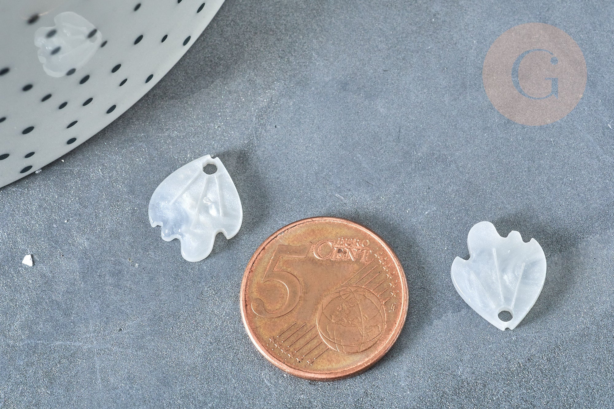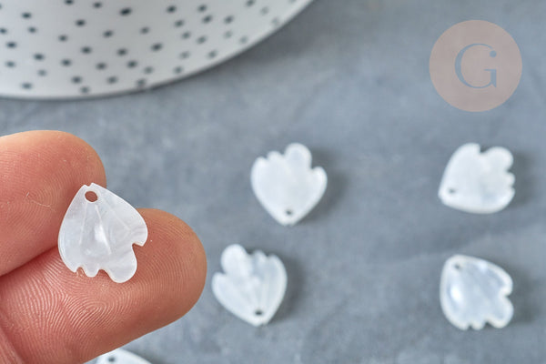 Adoptez ces adorables feuille pour vos créations de bijoux fantaisie . Celui-ci est en résine blanc crème et translucide.