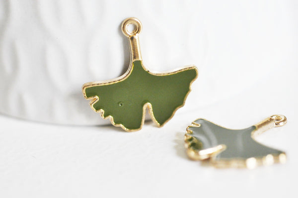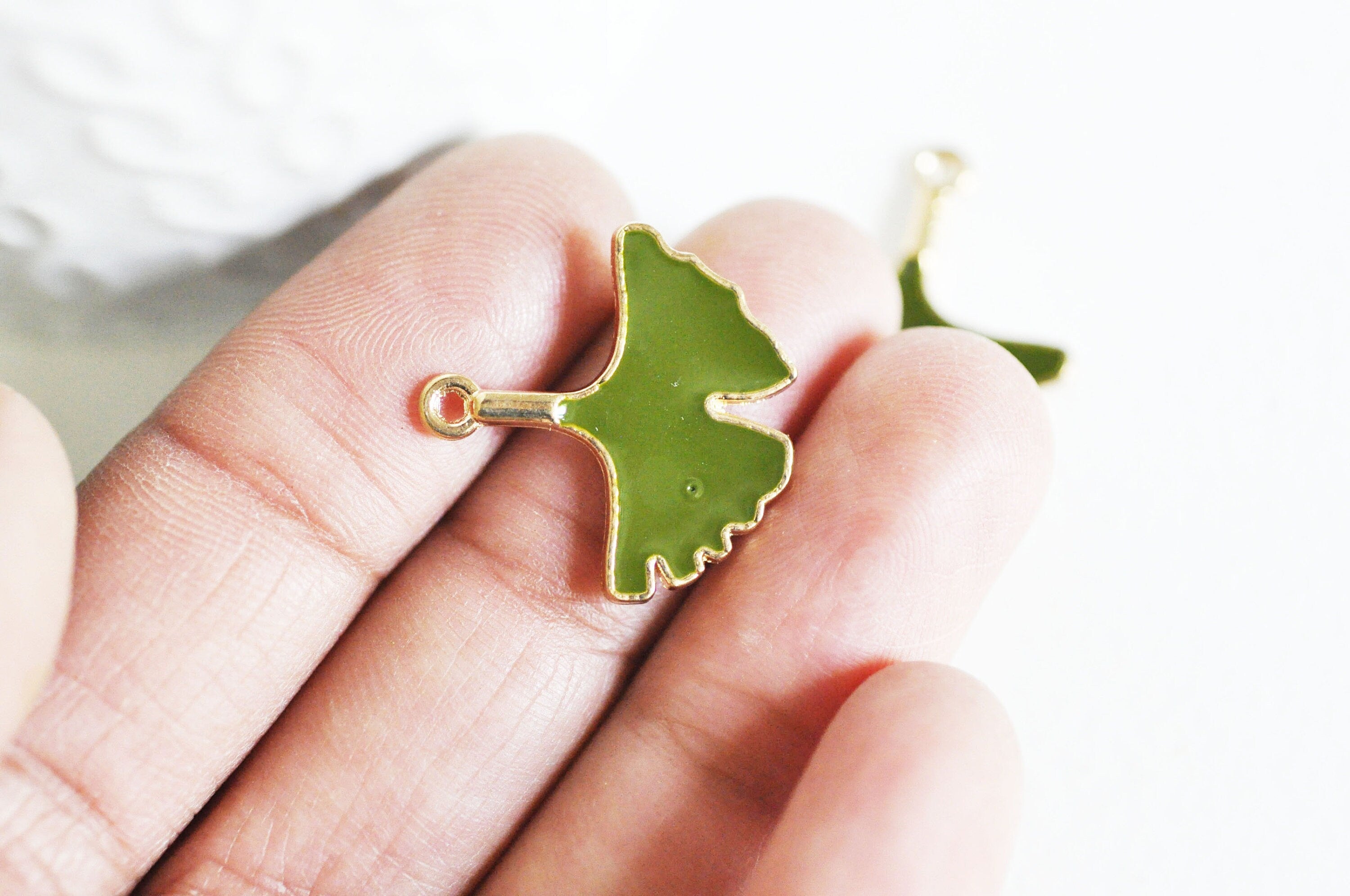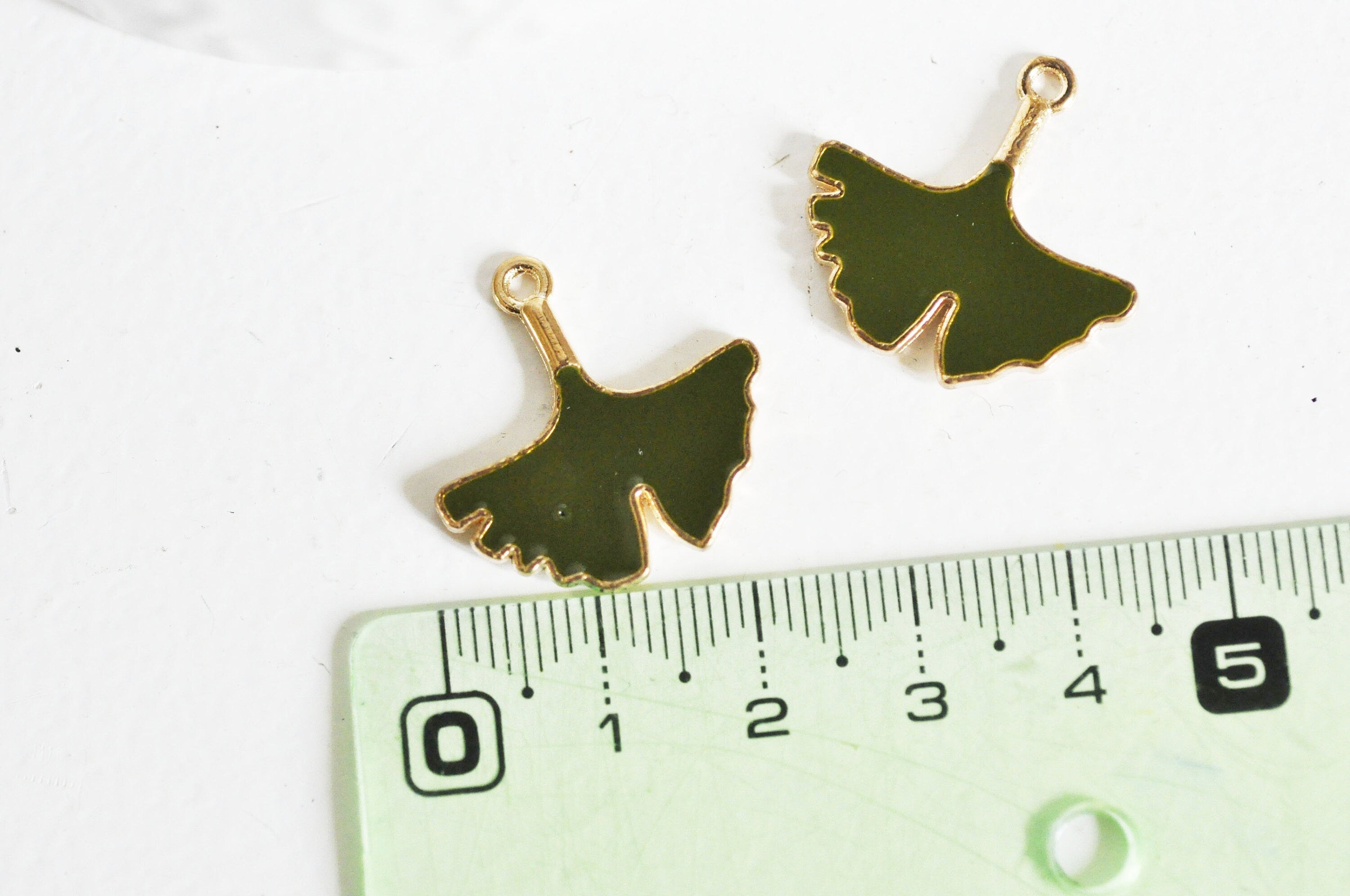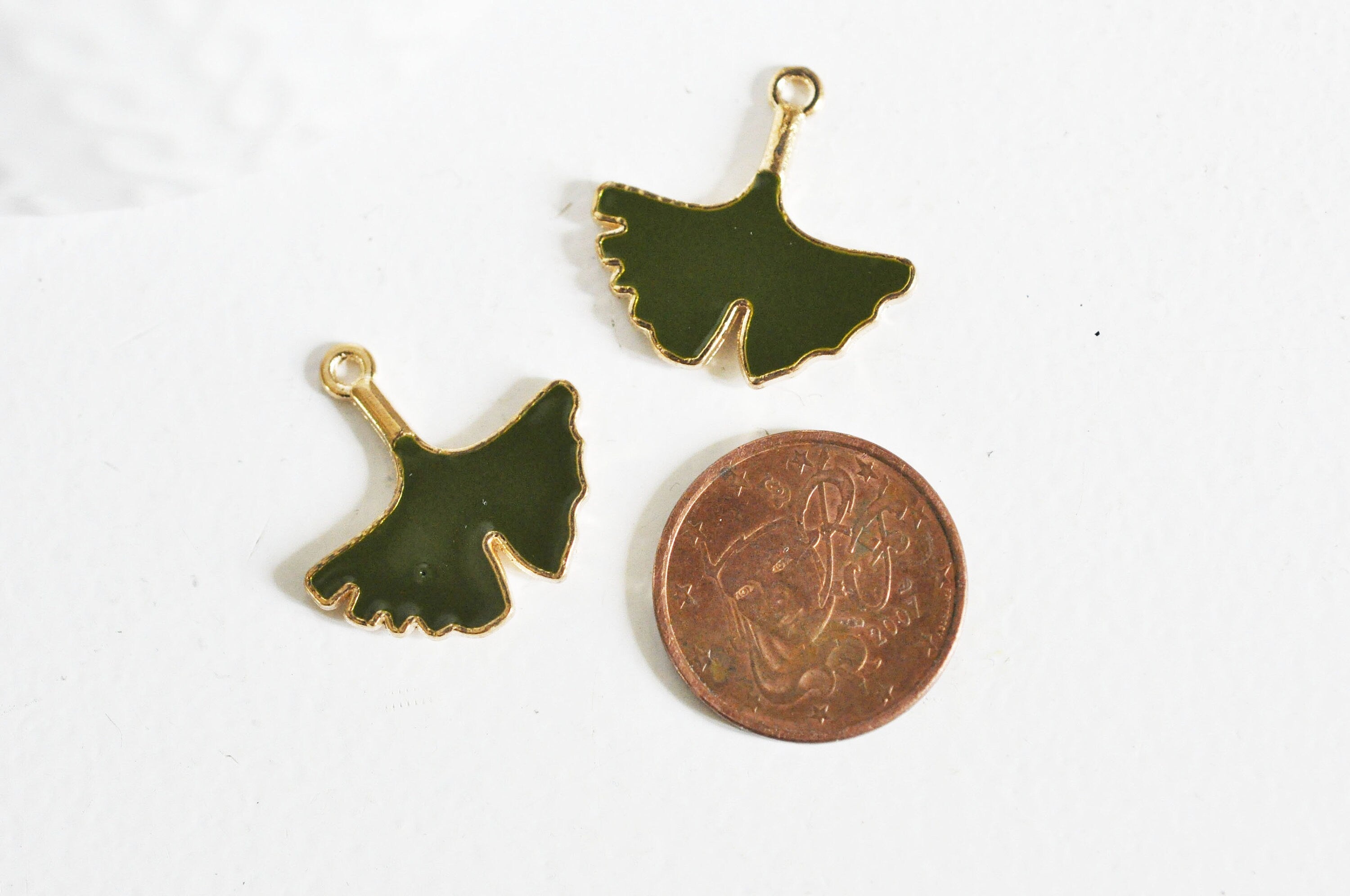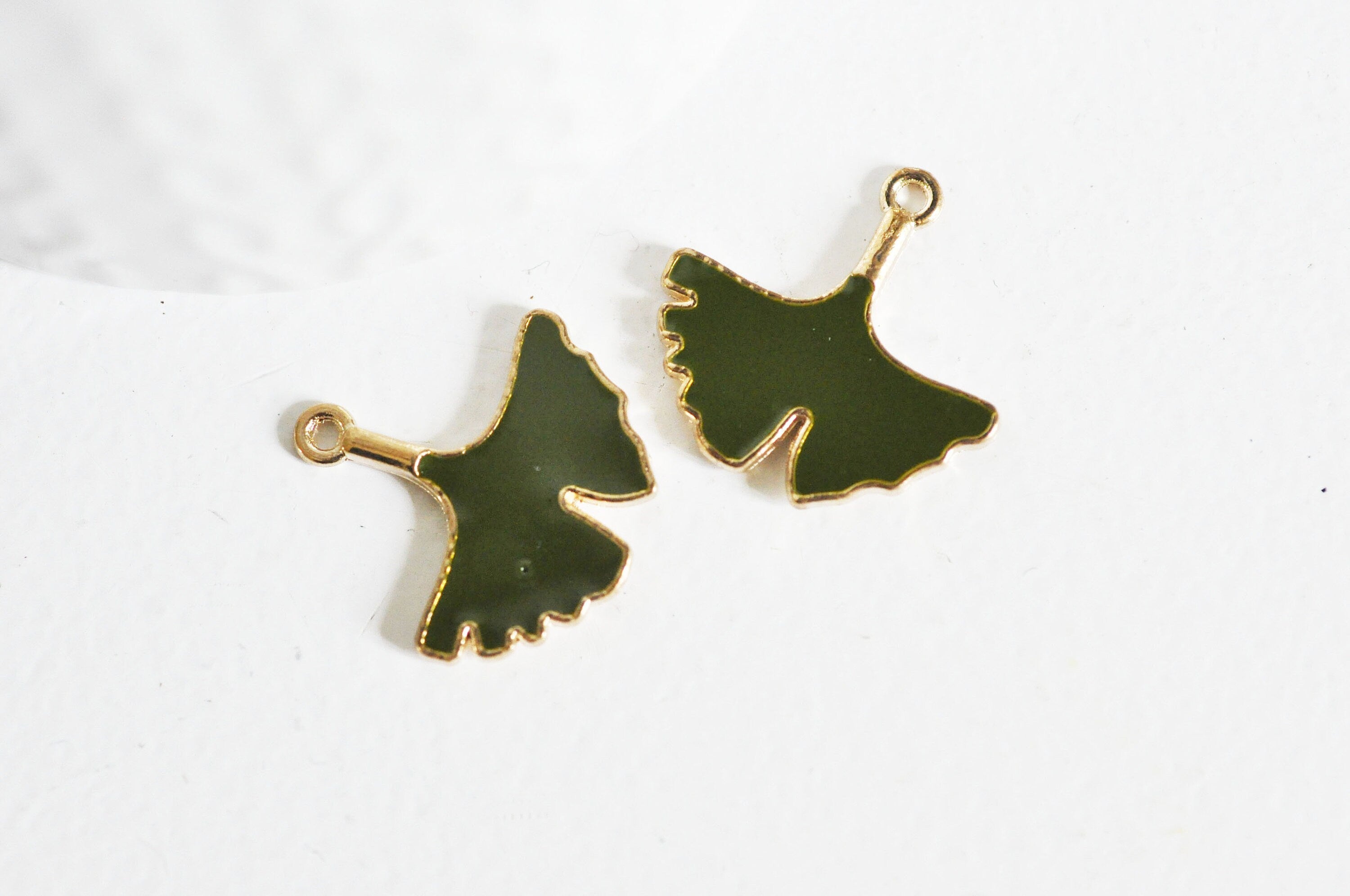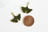 Pendentif feuilles gingko zamac doré émail vert,breloque laiton feuille Gingko pour création bijoux doré, 22.5mm, x2 (G5282)