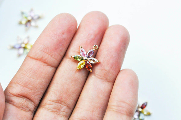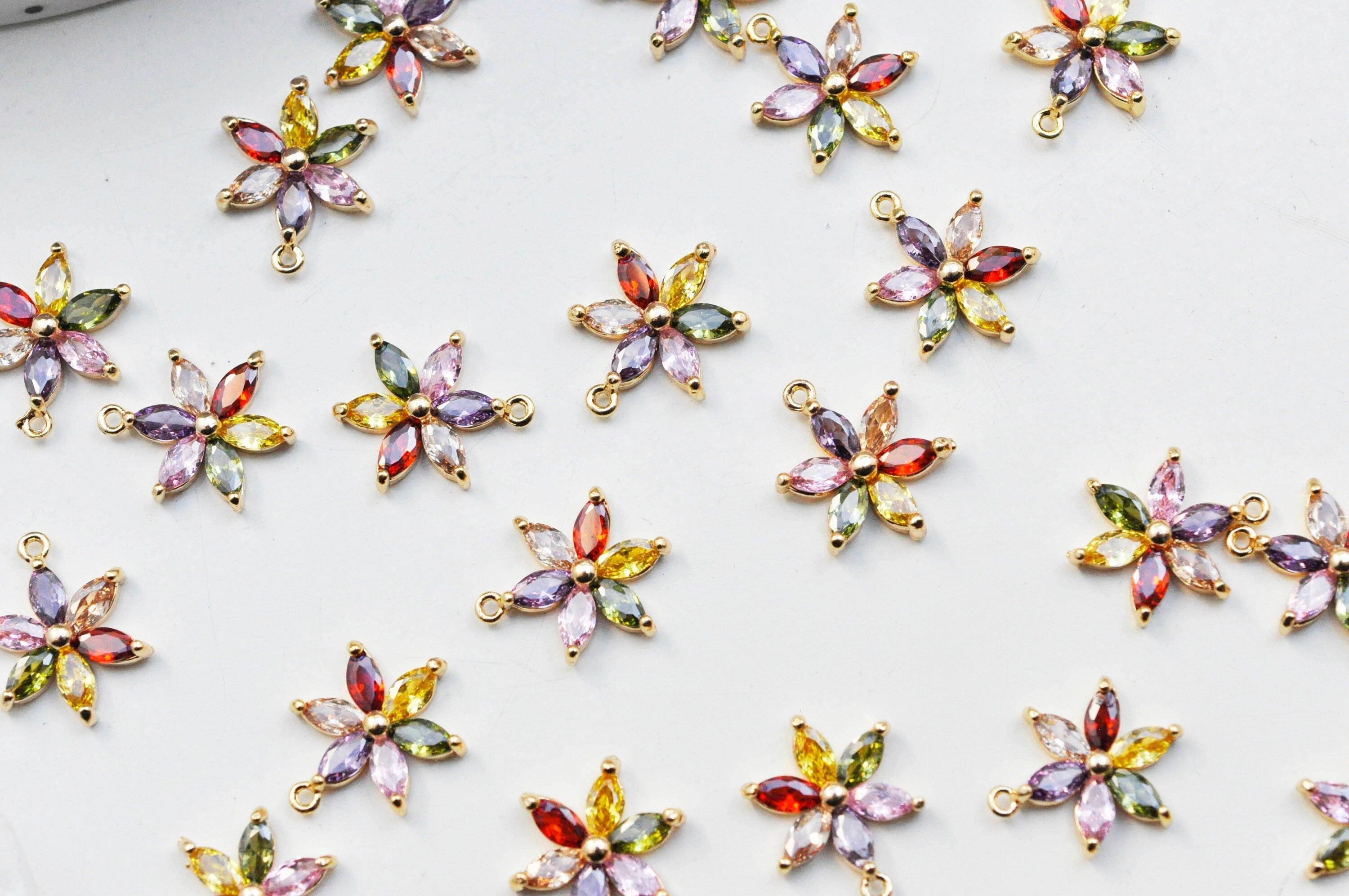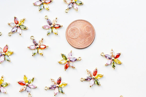 Pendentif fleur doré 24 carats zircon multicolore,pendentif doré cristal, création bijoux,17mm, l'unité