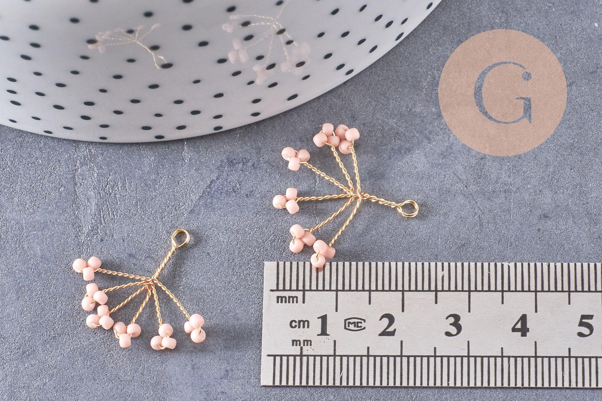Pendentif fleur perle rocaille rose laiton doré, Pendentif bijou laiton,lot de 2, 21mm