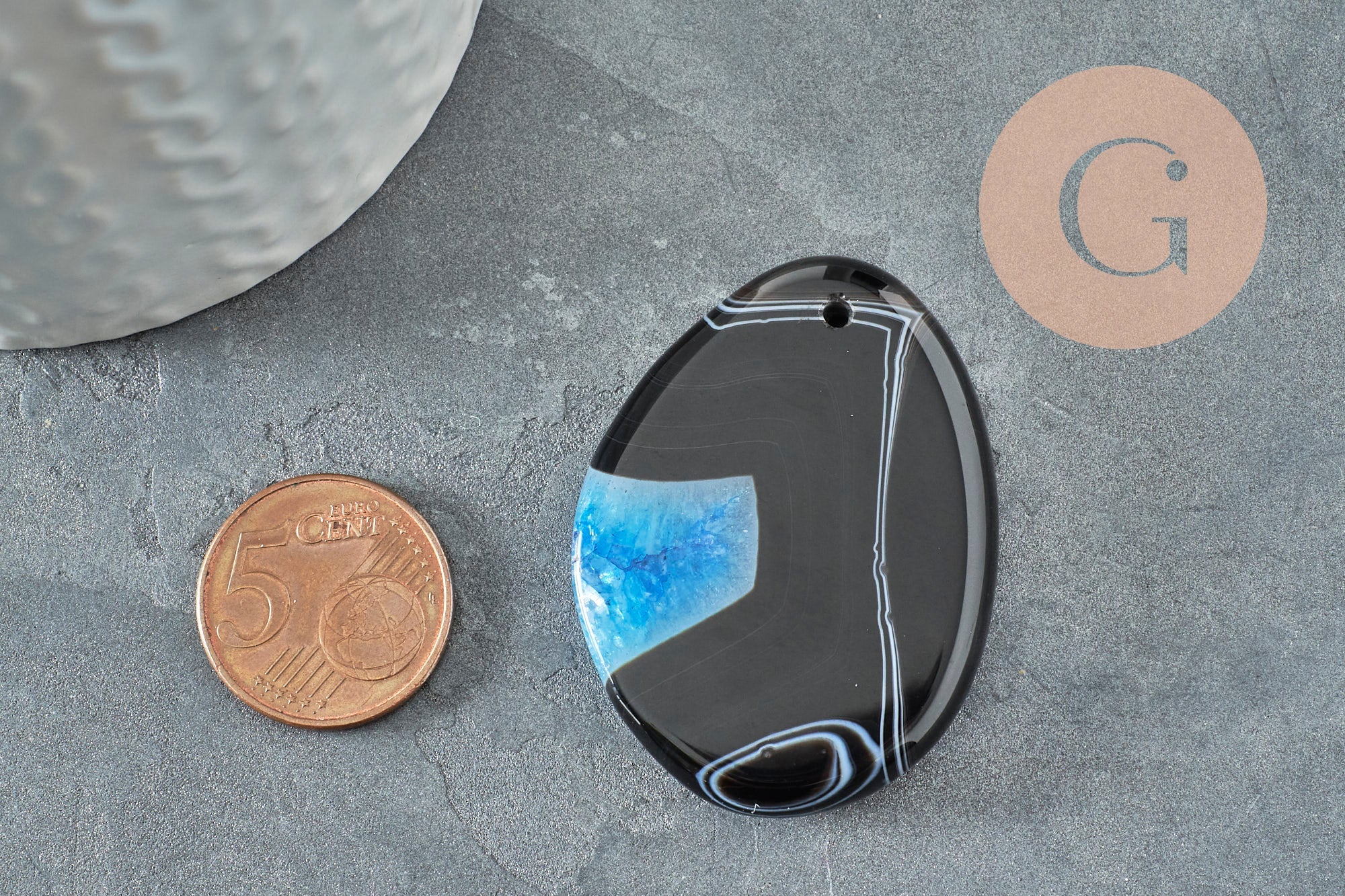 Craquez pour ce pendentif goutte en agate rayée naturelle noir et colorée, pour réaliser des bijoux très tendances façon bohème chic.