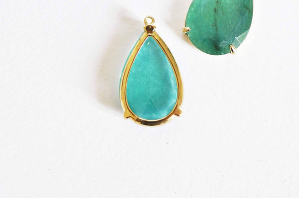 Pendentif goutte agate vert support doré, pendentif pierre,agate naturelle,agate verte,création bijoux, pierre naturelle, 32mm, x1 G2435