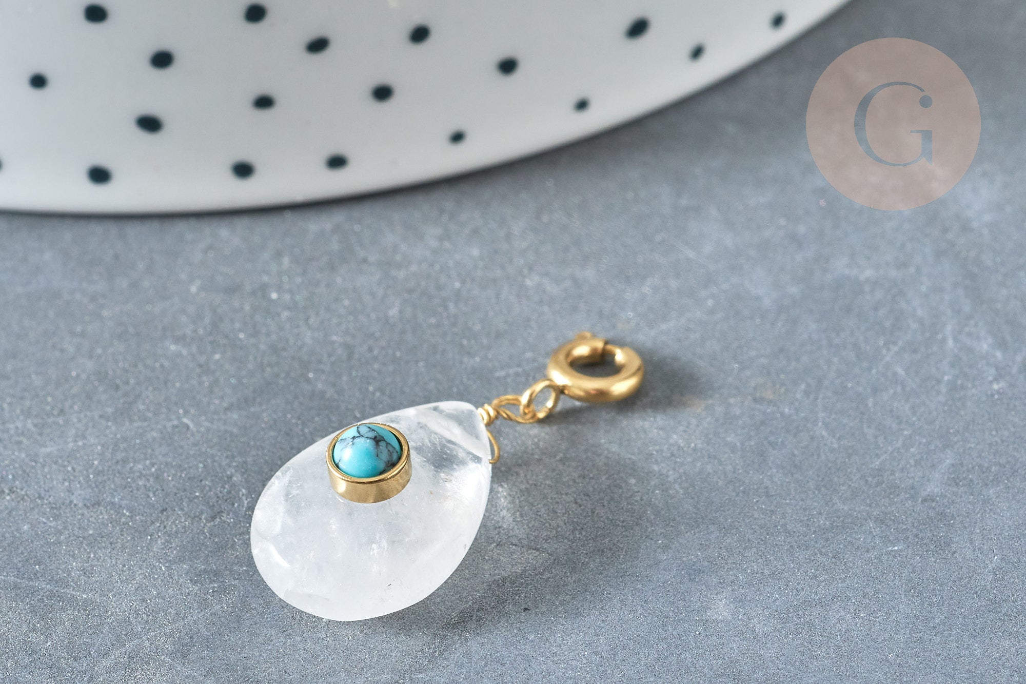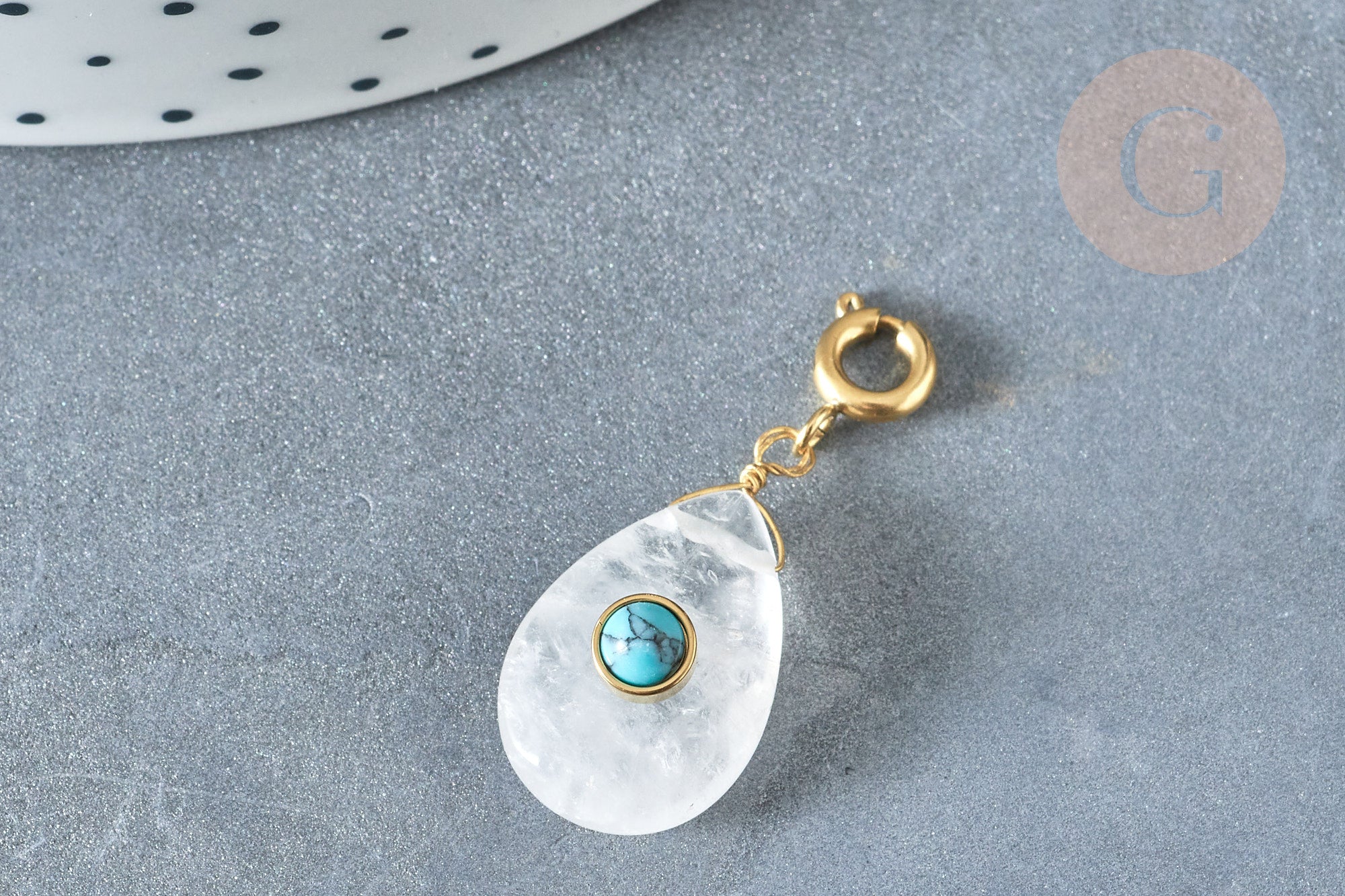 On craque pour ce ravissant pendentif amulette en cristal naturel pour créer des bijoux dans la tendance des pierres naturelle. Il est décoré d'un petit cabochon en imitation howlite en forme de losange qui lui donne un aspect tendance et...