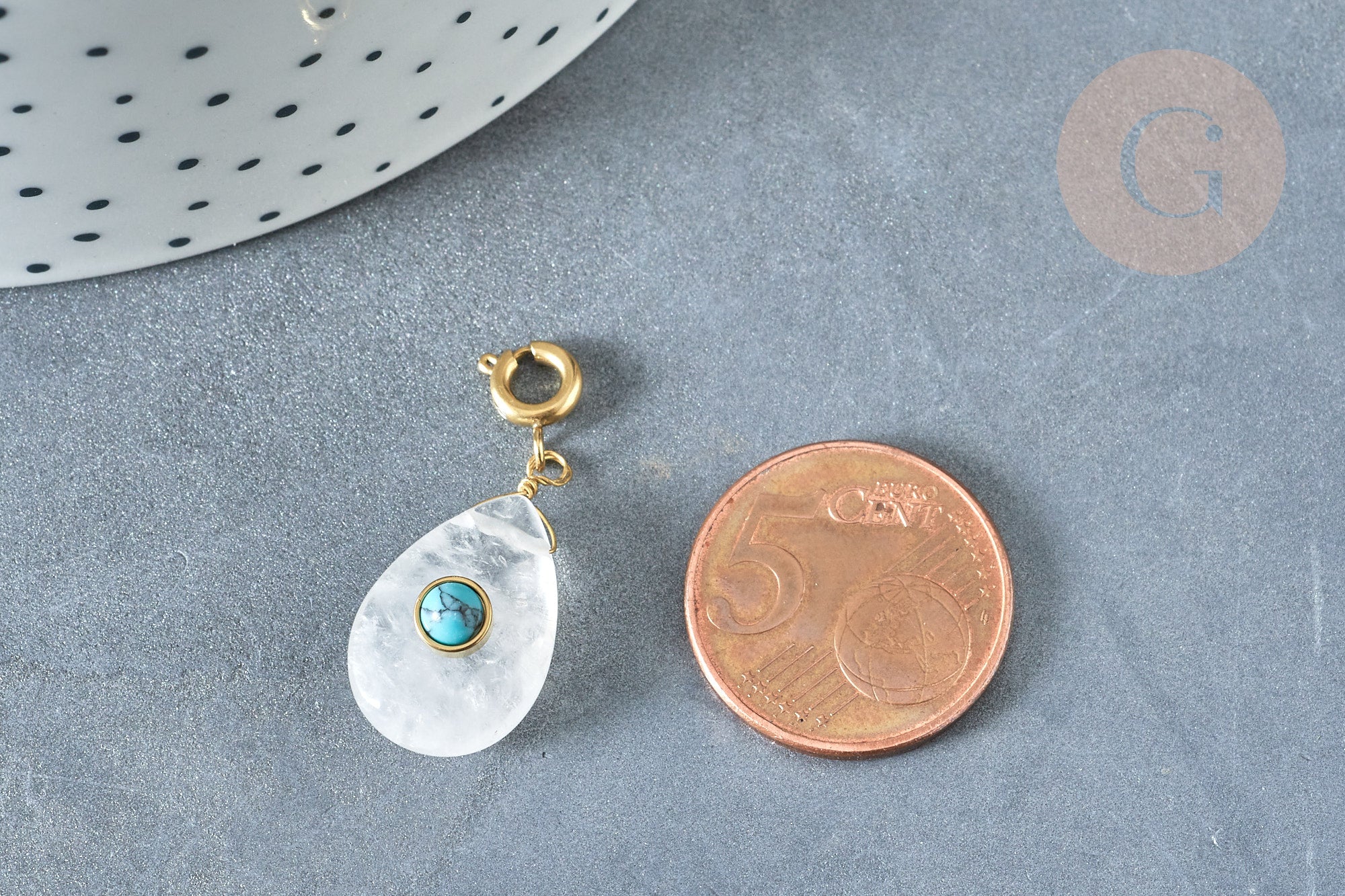 EP-Pendentif goutte amulette cristal de roche naturel acier inoxydable doré 30mm, x1 (G7631)