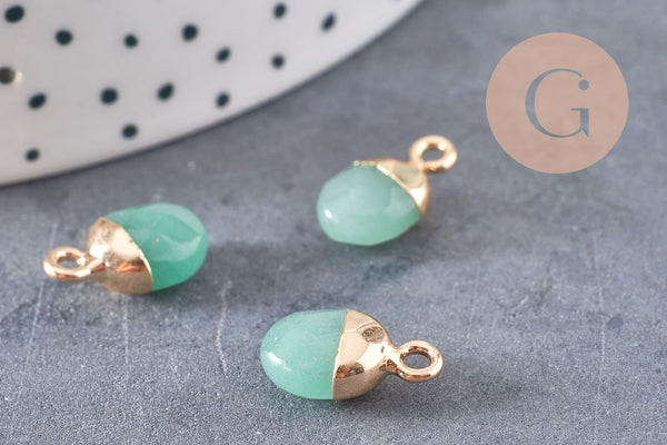 Ajoutez une touche de douceur et d’élégance à vos créations avec ce pendentif goutte en aventurine naturelle. Son sertissage en fer doré sublime la pierre verte et lui apporte une finition raffinée. Idéal pour des bijoux DIY empreints de nature et de bien-être.