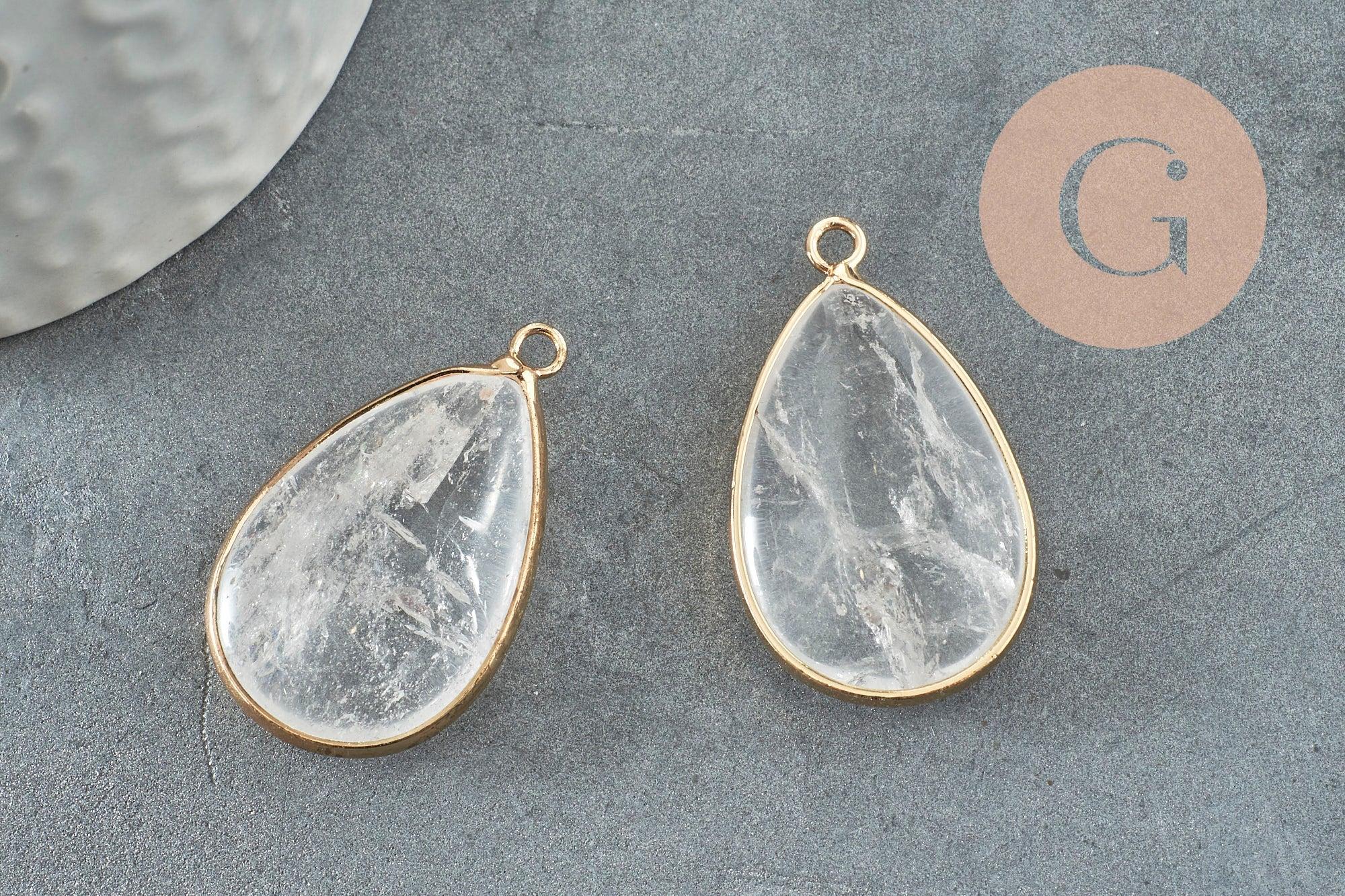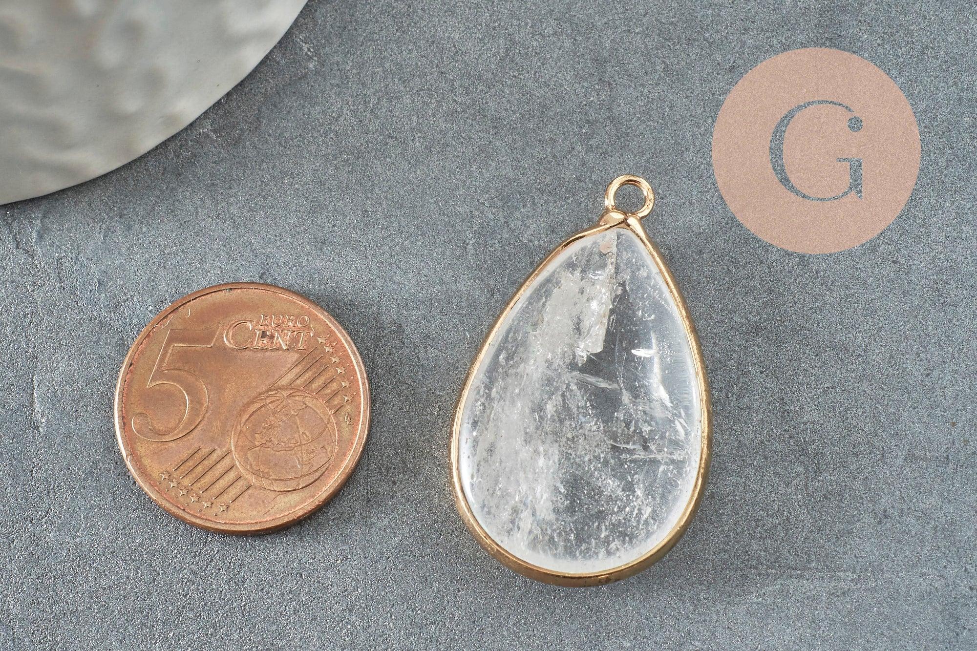 Pendentif goutte cristal doré 35mm,pendentif cristal transparent, pendentif pierre,cristal naturel, pendentif collier, x1 G0489