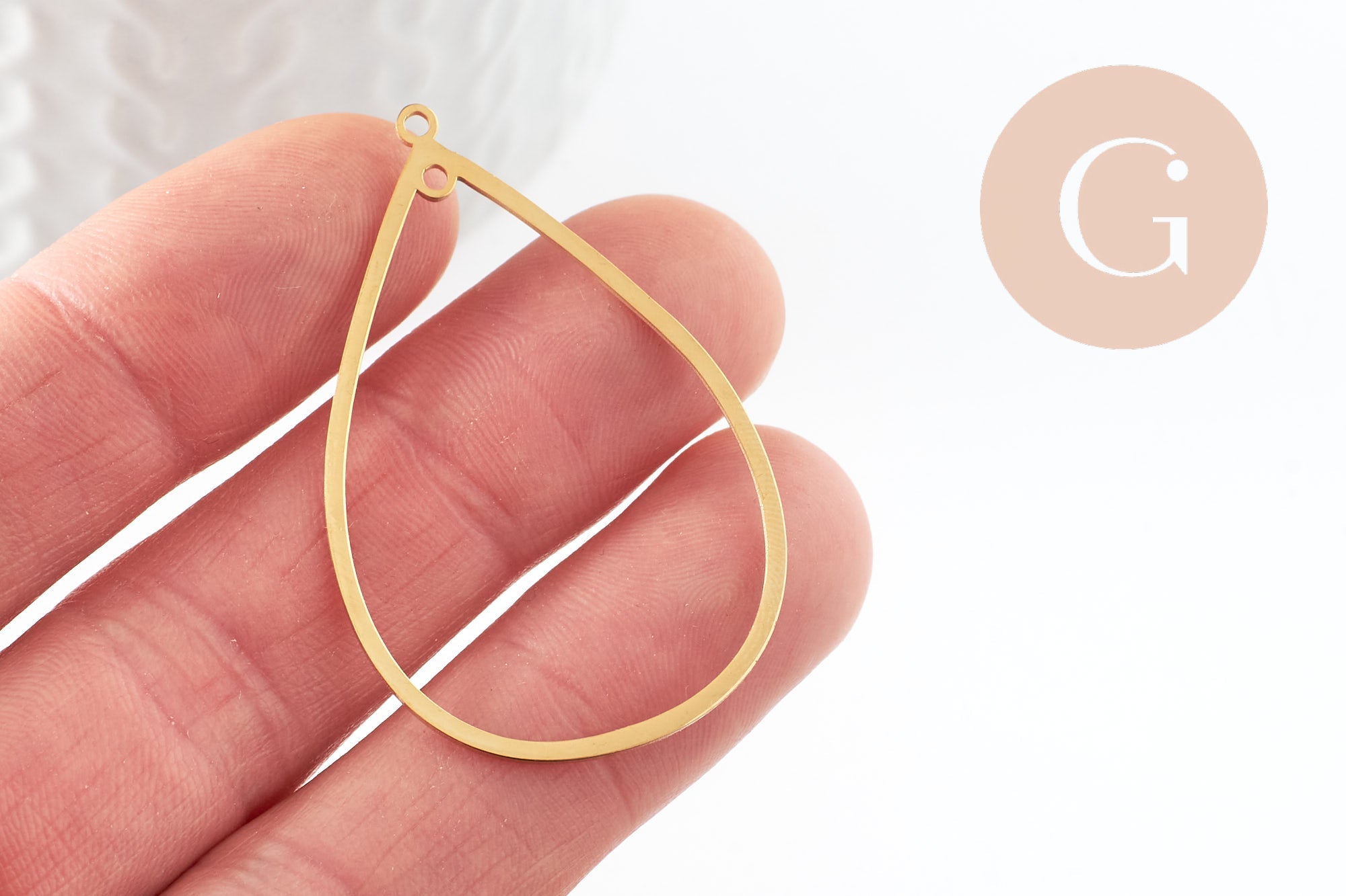 Un pendentif en acier doré en forme de goutte à utiliser tel quel ou à personnaliser avec des perles, pierres...
