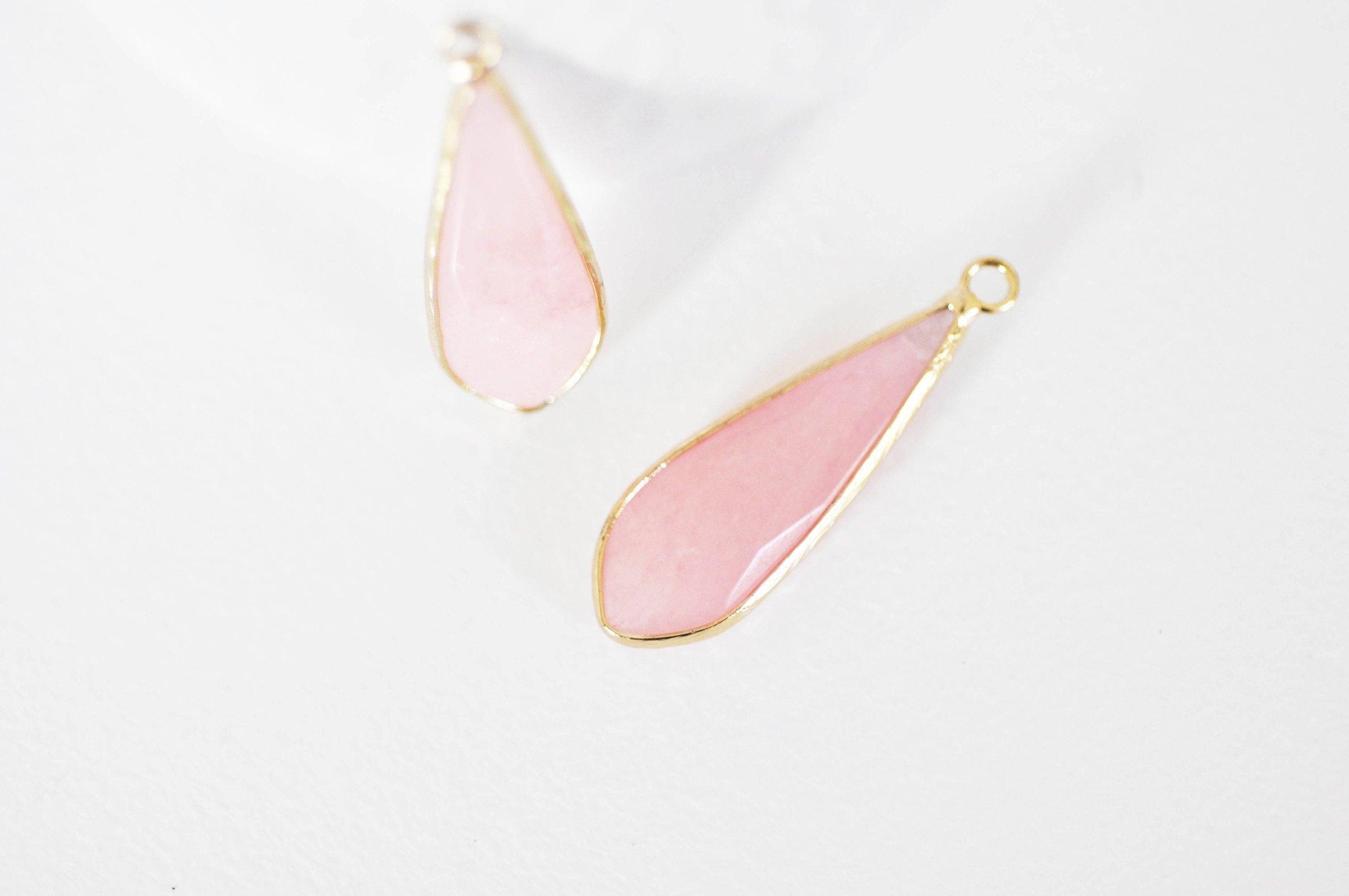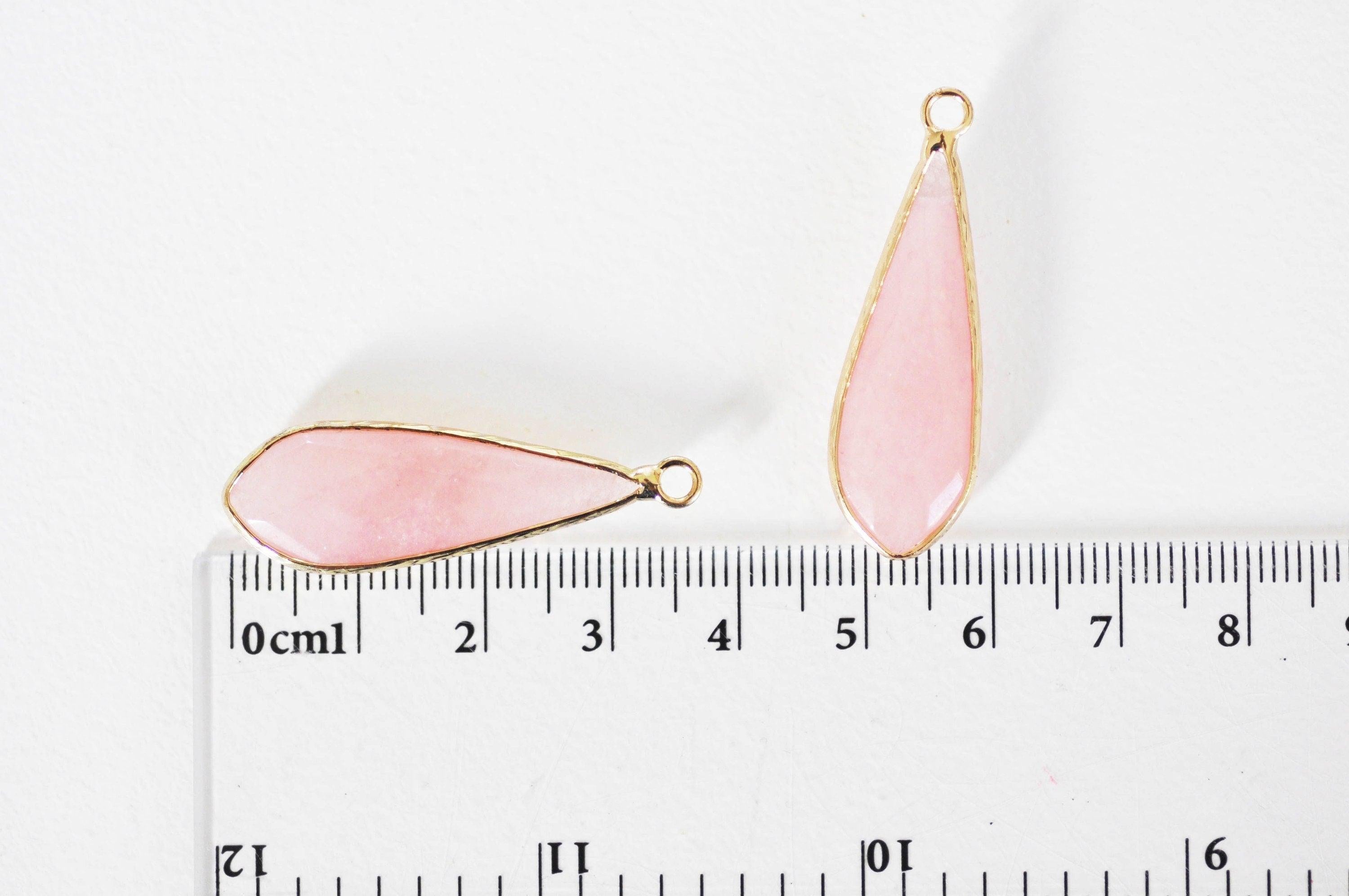 Pendentif goutte jade rose facettes doré, fournitures créatives,pendentif jade, pendentif pierre,jade naturel, jade teinté rose,31mm