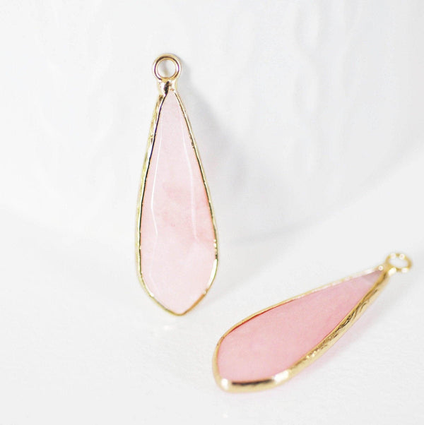 Pendentif goutte jade rose facettes doré,pendentif jade, pendentif pierre,jade naturel, jade teinté rose,31mm, x1 G1774