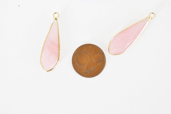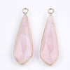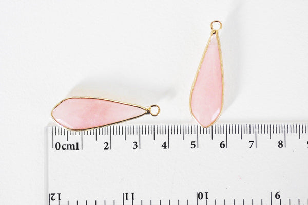 Pendentif goutte jade rose facettes doré, fournitures créatives,pendentif jade, pendentif pierre,jade naturel, jade teinté rose,31mm