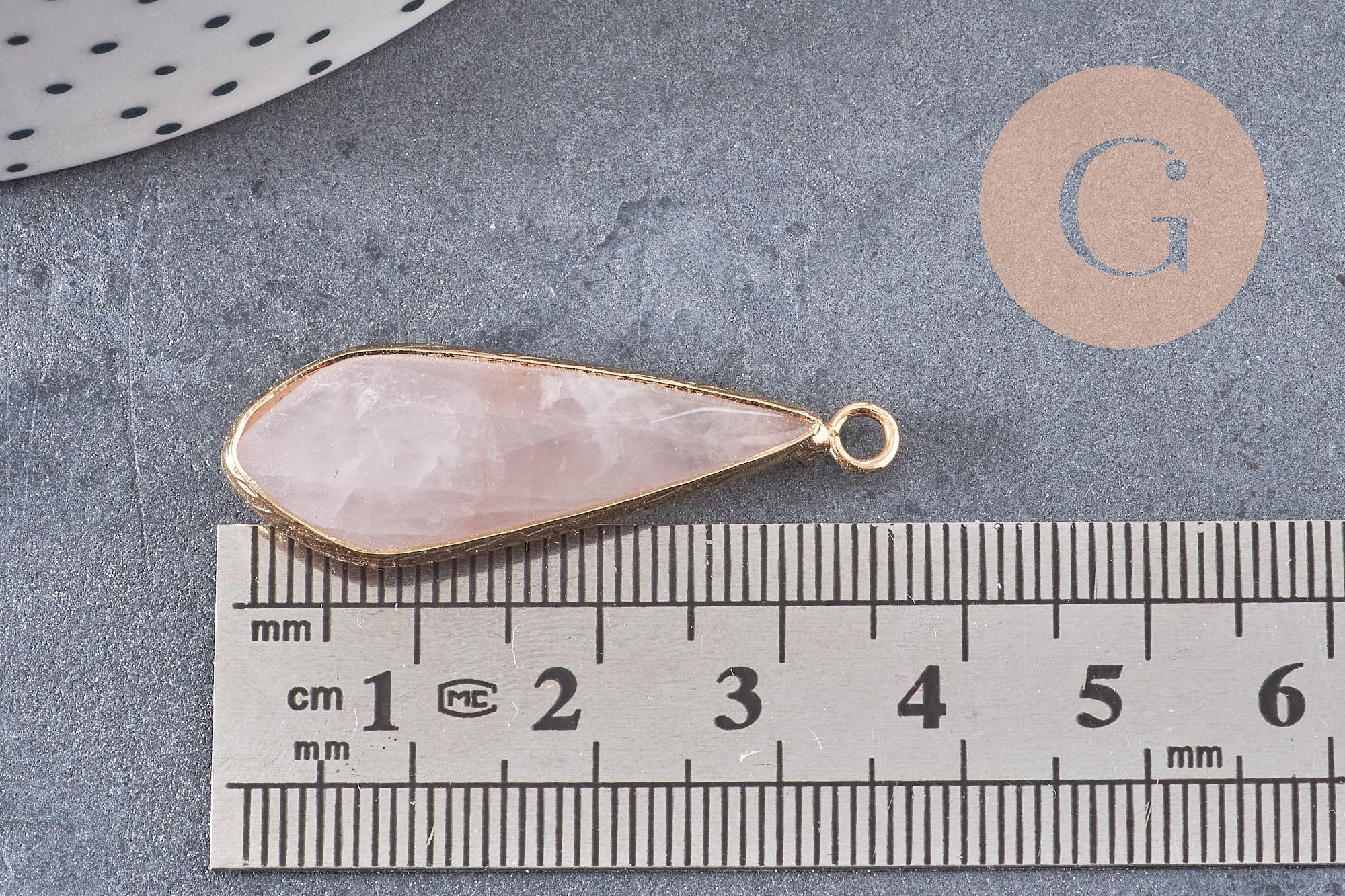 Pendentif goutte jade rose facettes doré,pendentif jade, pendentif pierre,jade naturel, jade teinté rose,31mm, x1 G2458