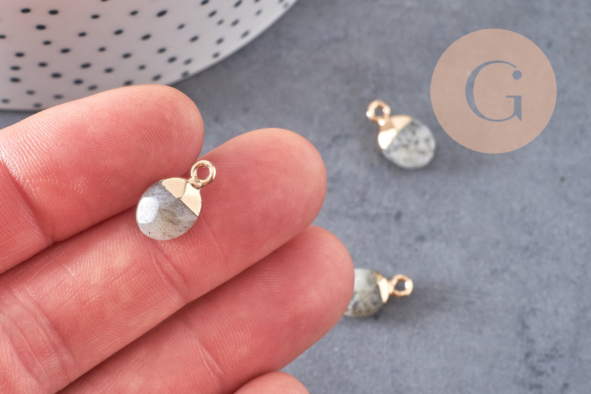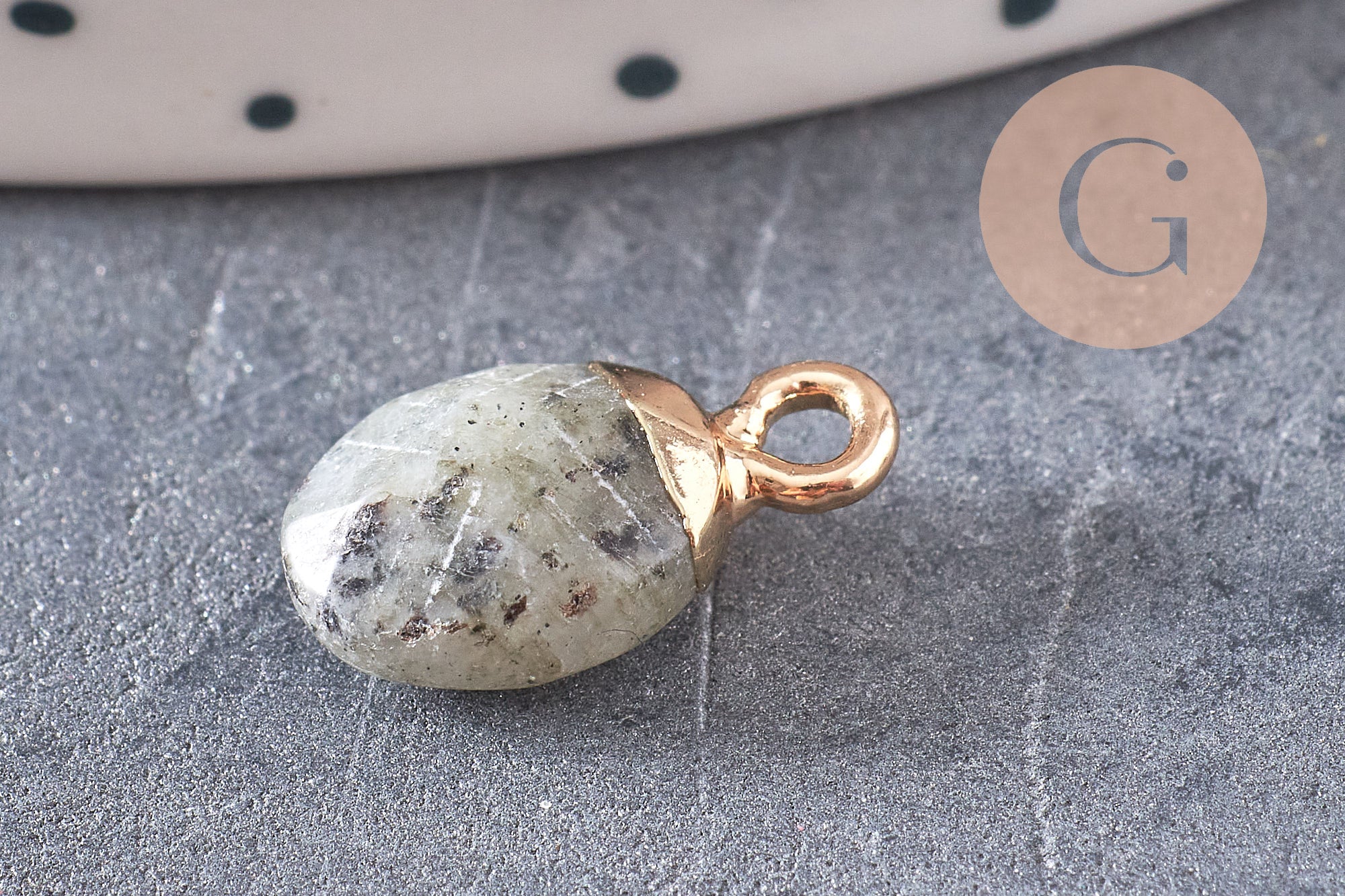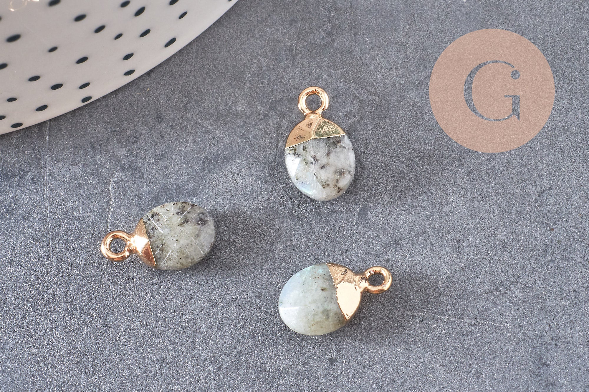 Craquez pour ce petit pendentif très discret en labradorite naturelle avec son support en fer doré.