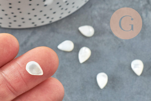Craquez pour ces pendentifs goutte en nacre blanche de très belle qualité, sans différence de couleur entre elles. Un joli produit pour réaliser des boucles et colliers fins et élégants.