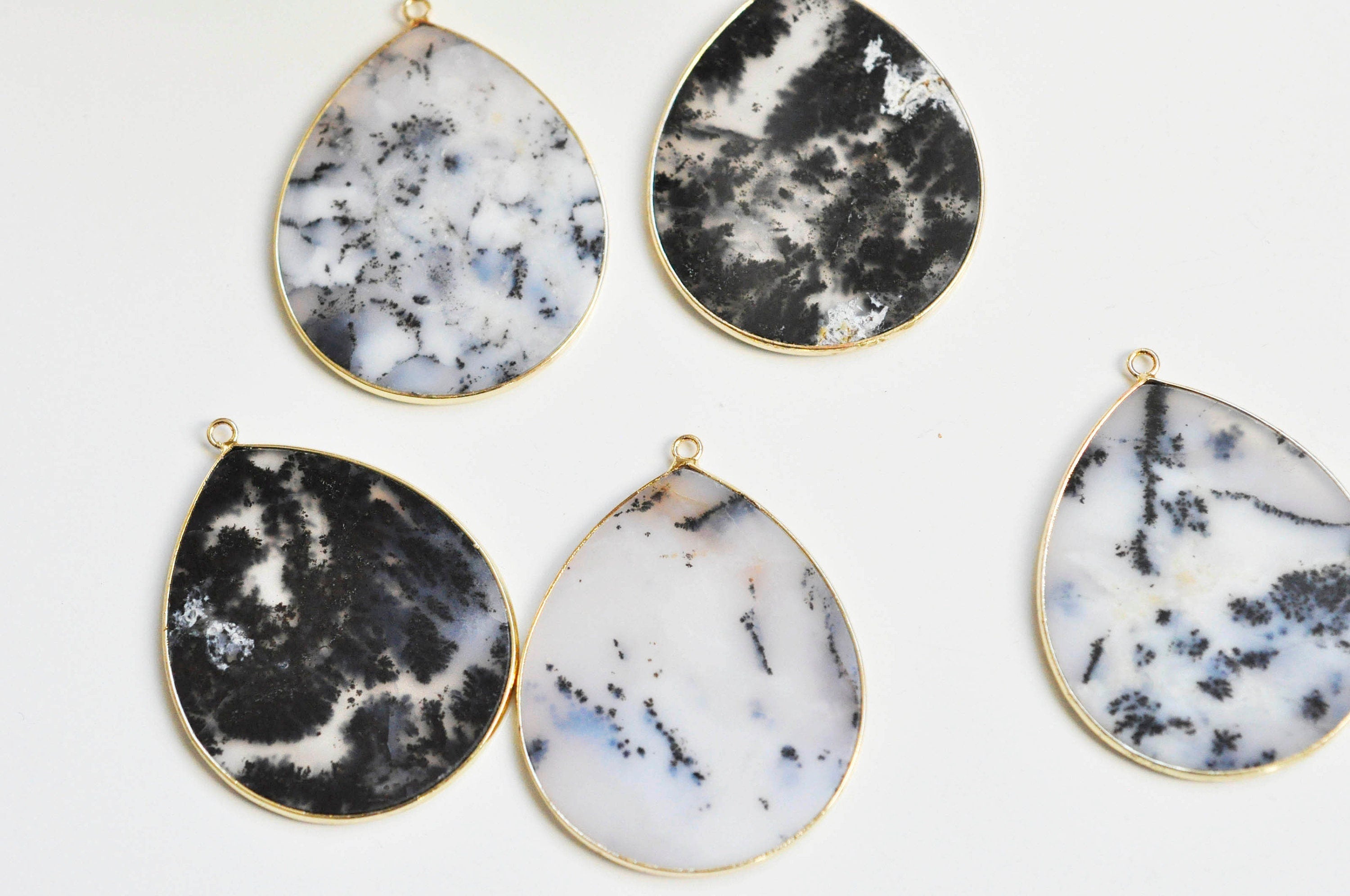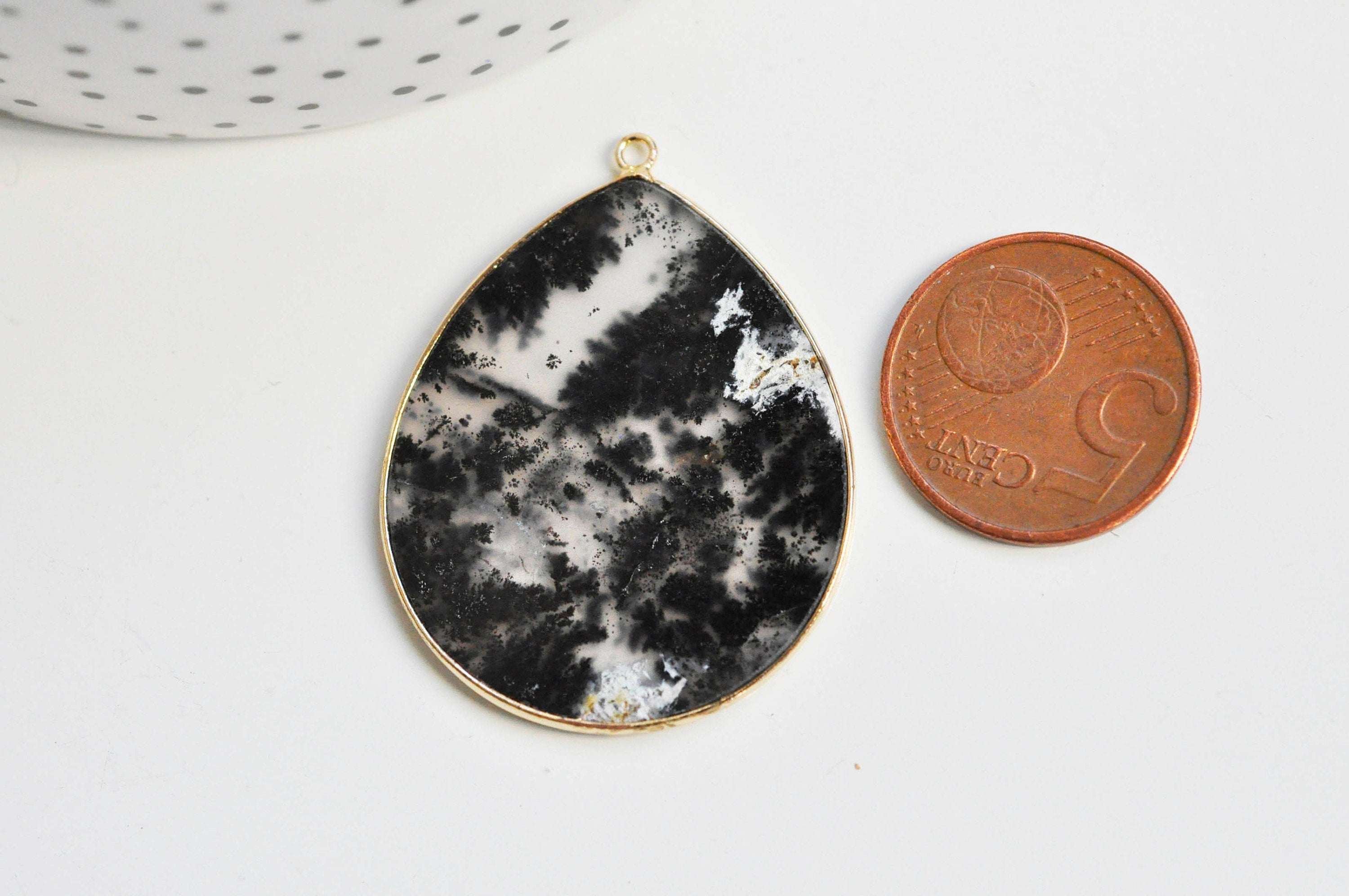 EP Pendentif goutte opale noire, pendentif bijoux pierre naturelle 41mm, x1 G3359