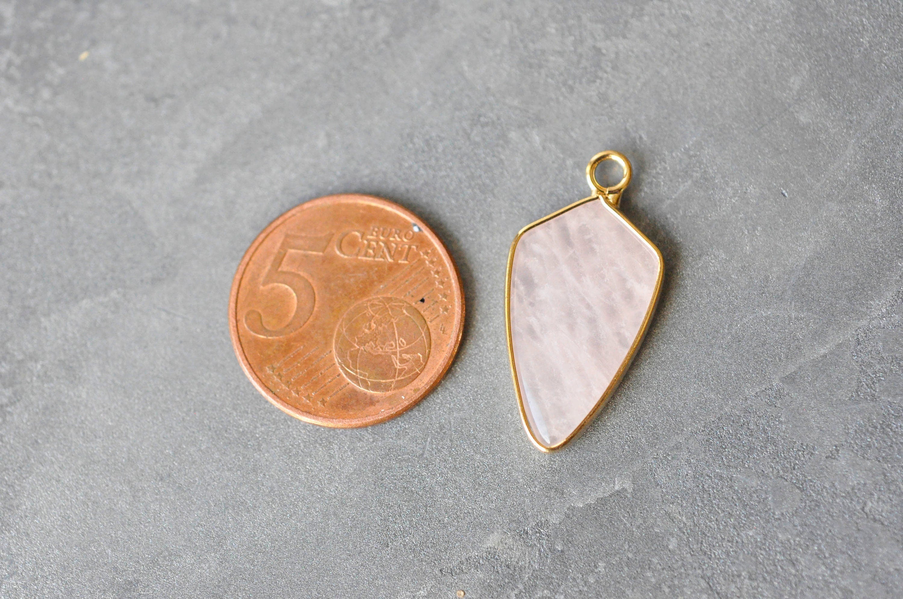 EP-Pendentif goutte quartz rose laiton doré,pendentif bijoux,pendentif pierre,quartz rose naturel,pendentif quartz rose,28mm, x1, G3940