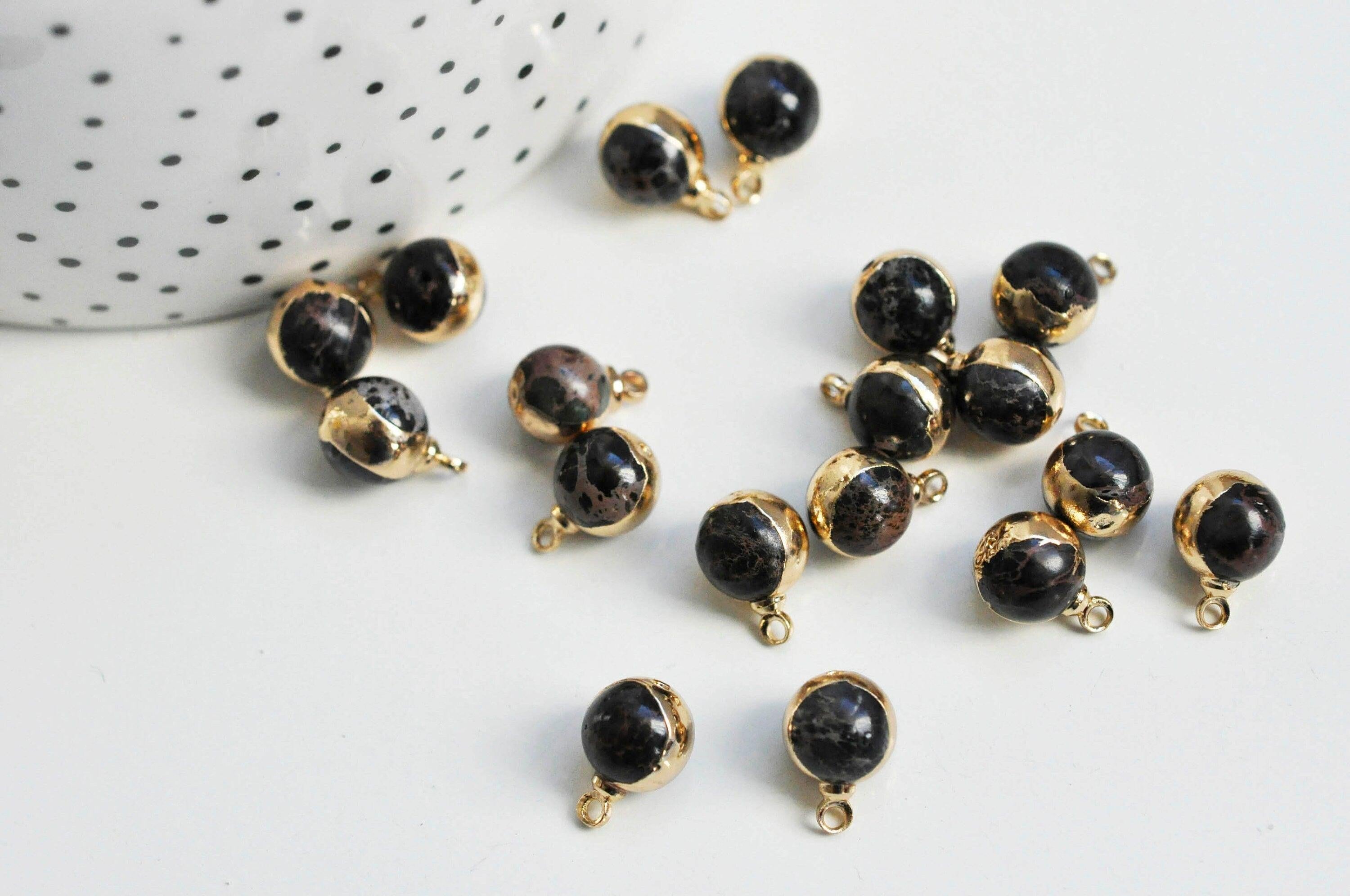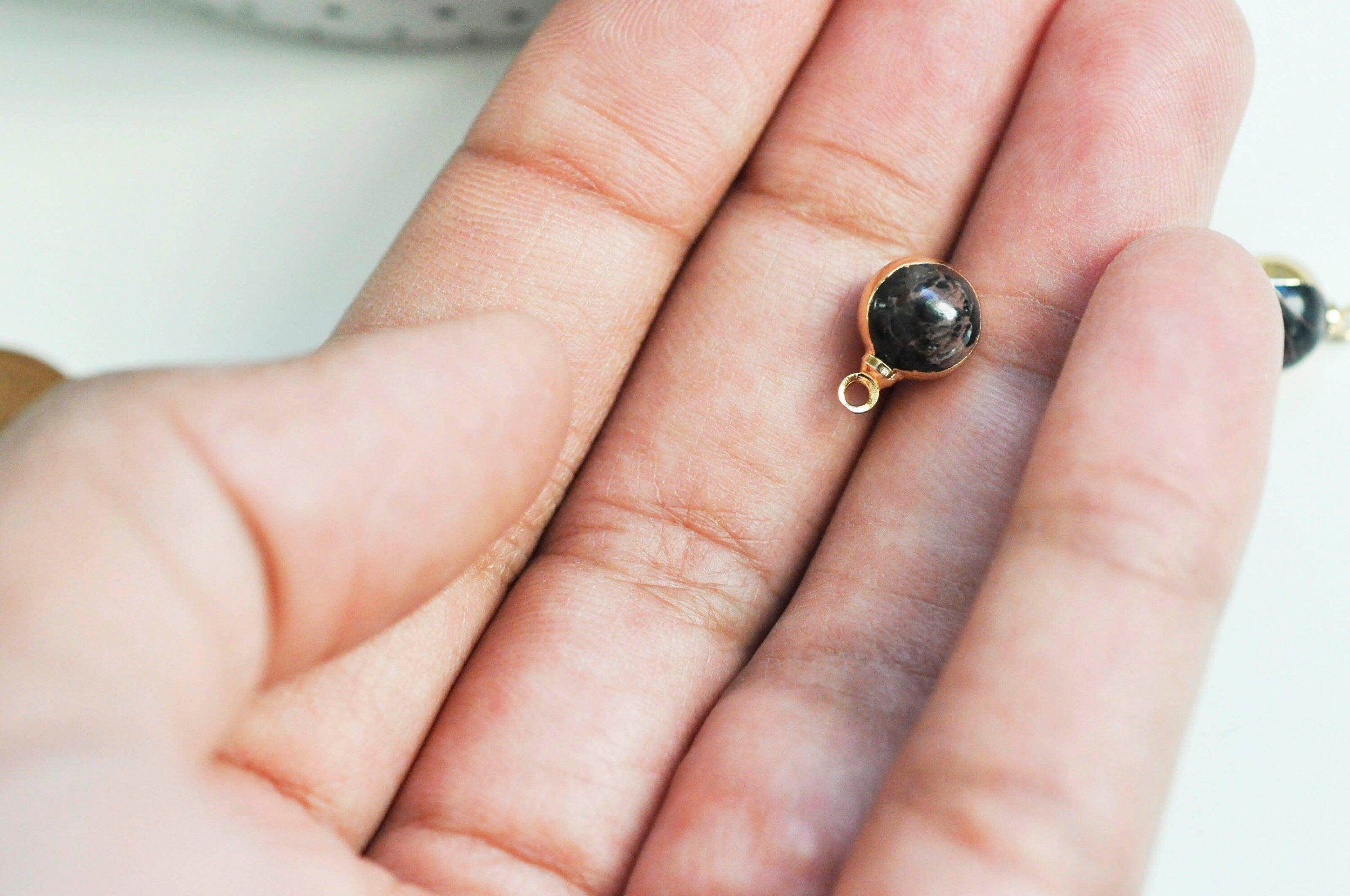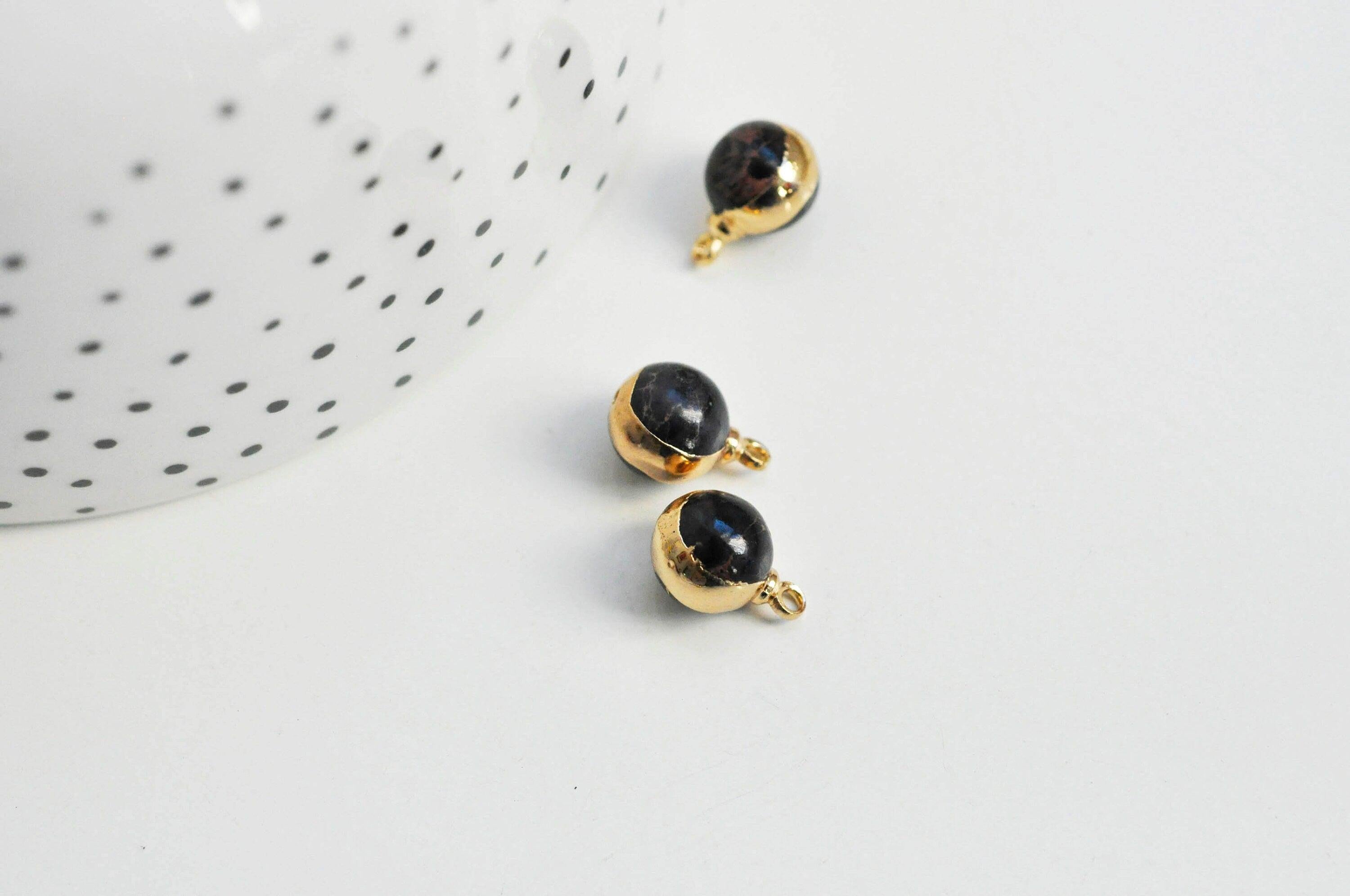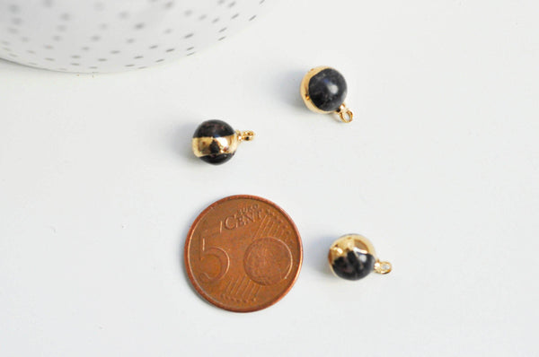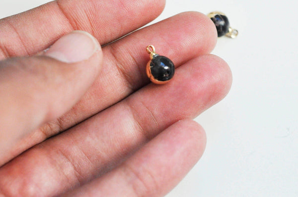 Pendentif goutte régalite noire doré facettes,bijou pierre,pendentif pierre régalite naturelle,12mm, x 2,G3358