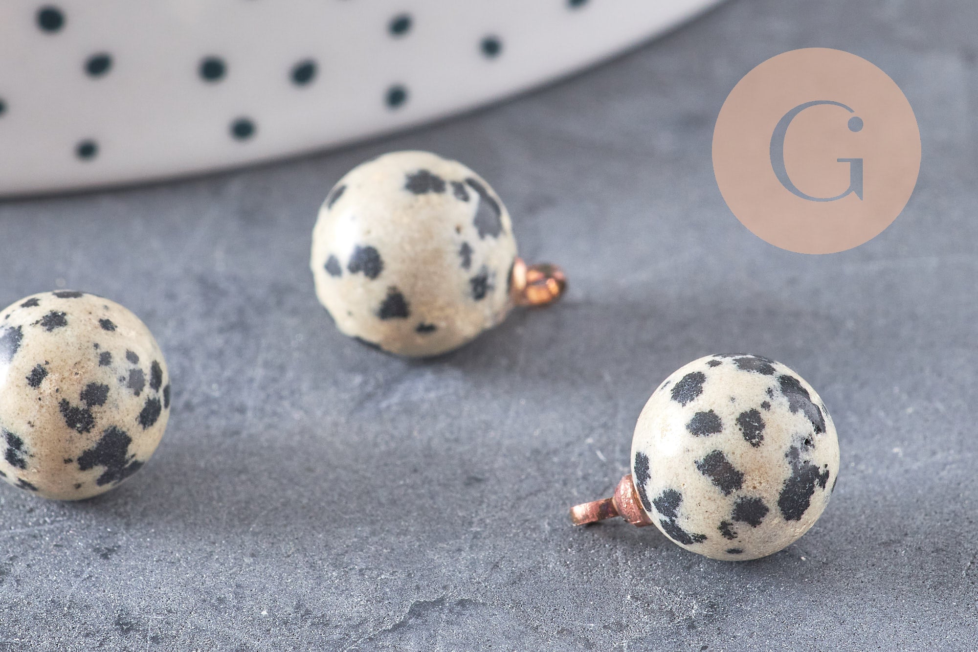 Pendentif goutte rond jaspe dalmatien naturel, support doré, création bijoux pierre naturelle, pendentif pierre naturelle, 14mm, l'unité