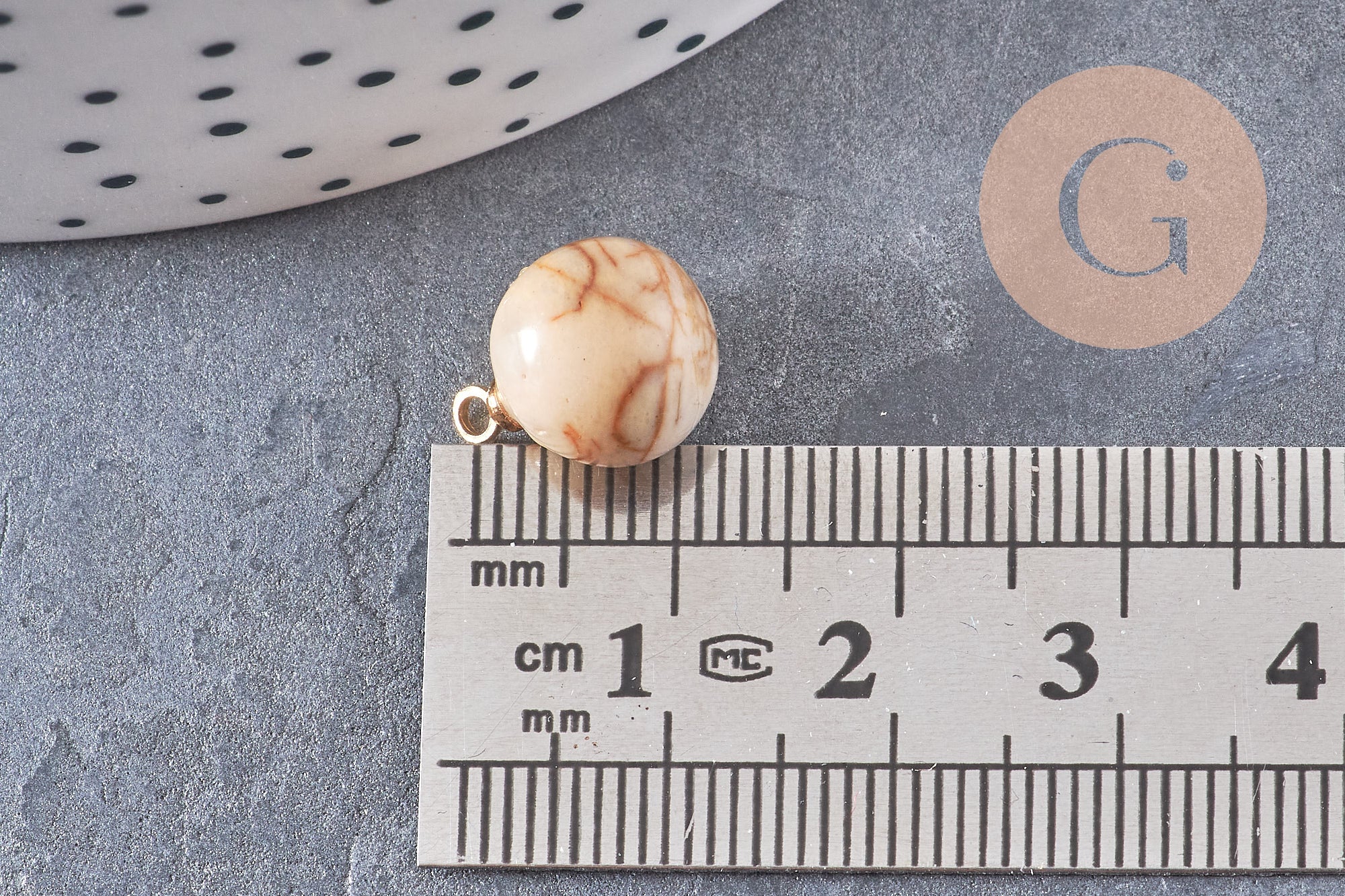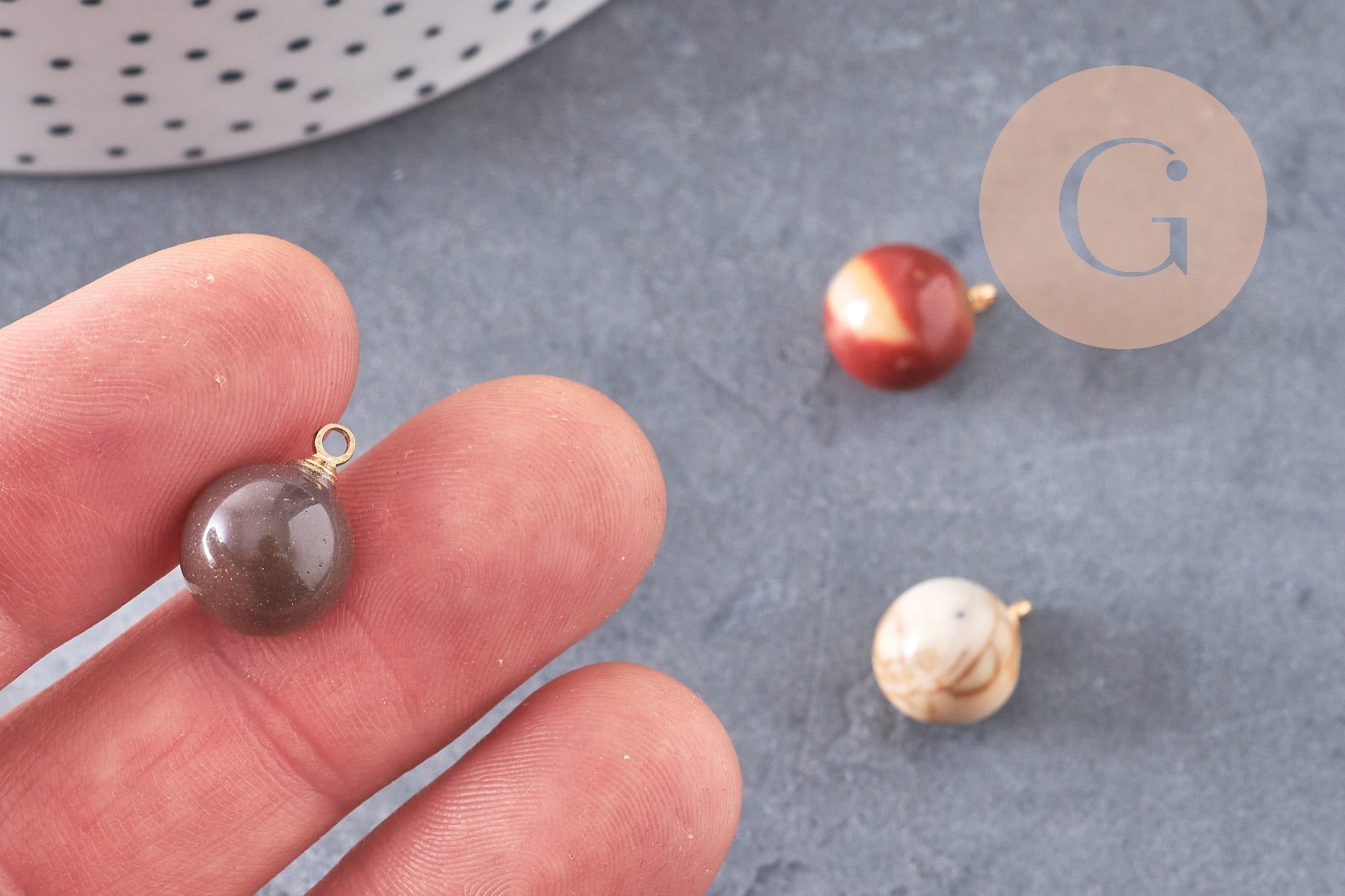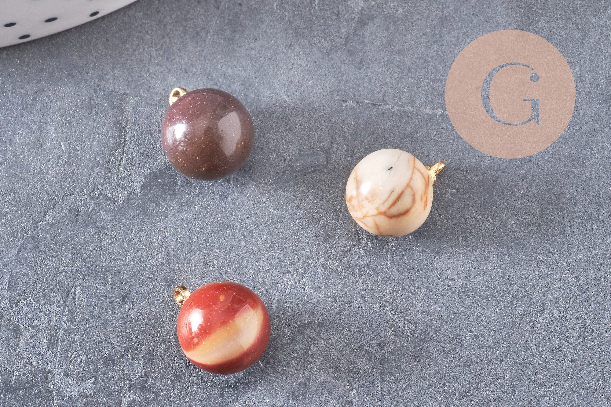 Pendentif goutte rond mookaite naturel, support doré, création bijoux pierre naturelle, pendentif pierre naturelle, 14mm, l'unité