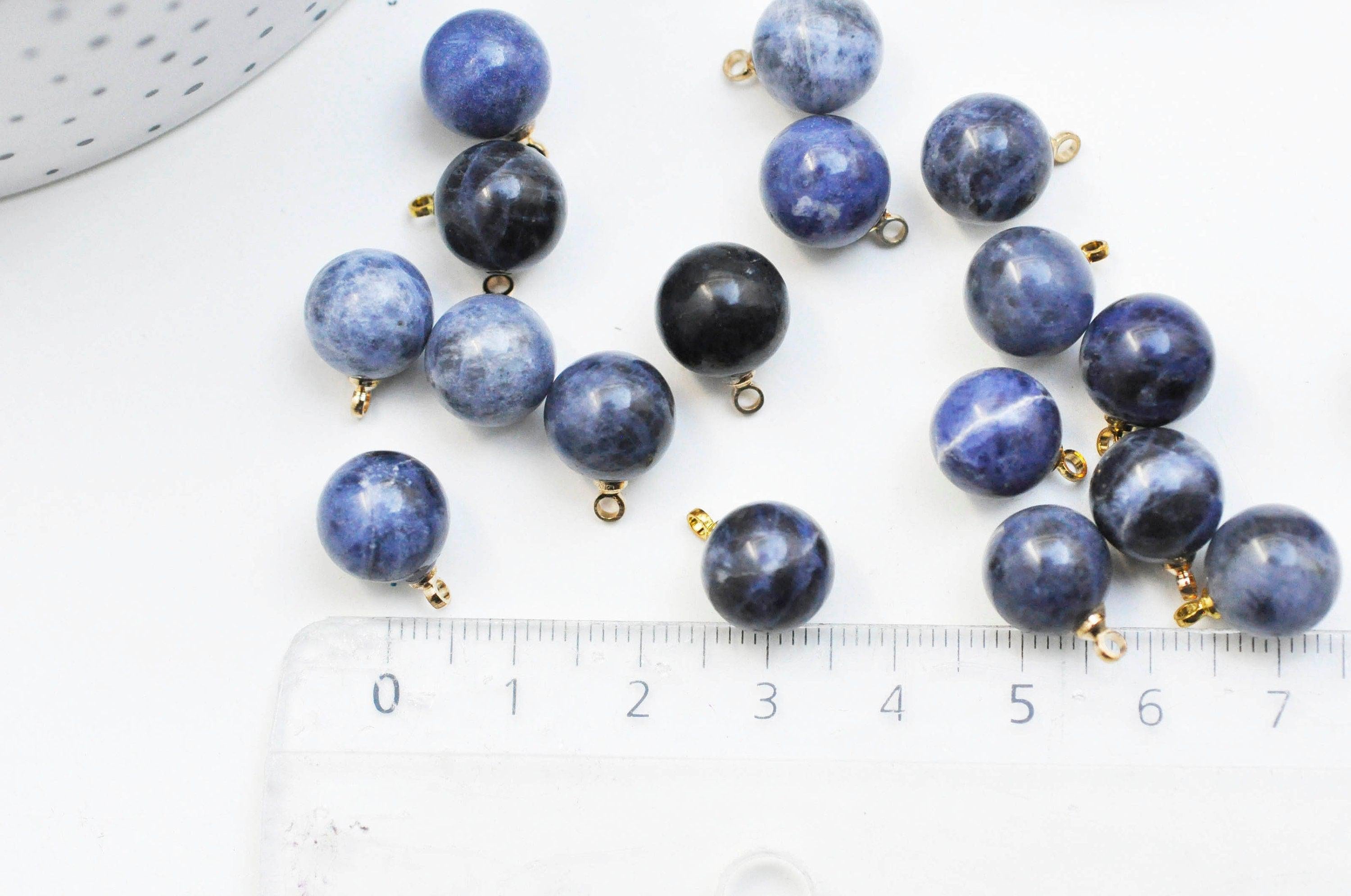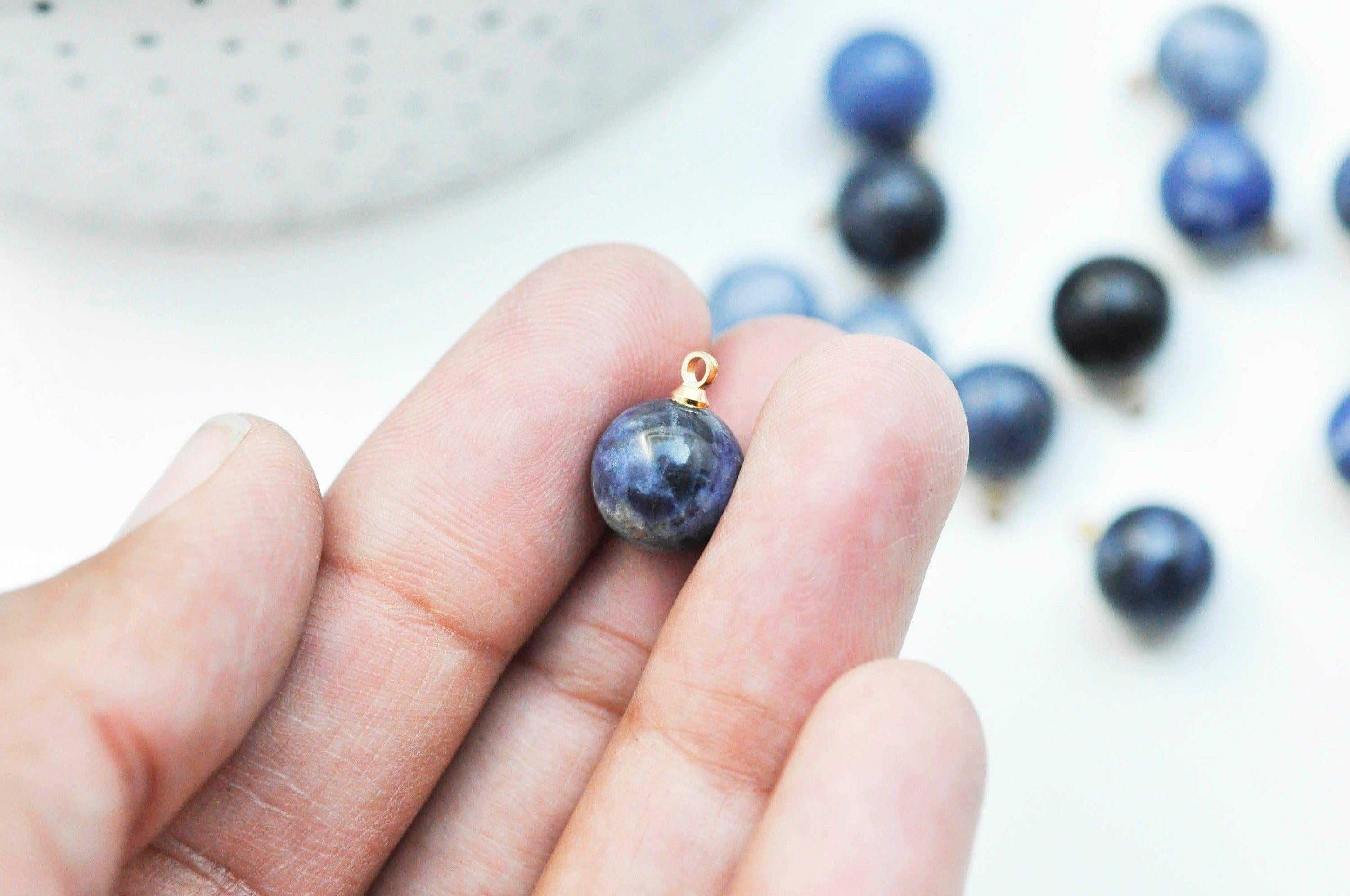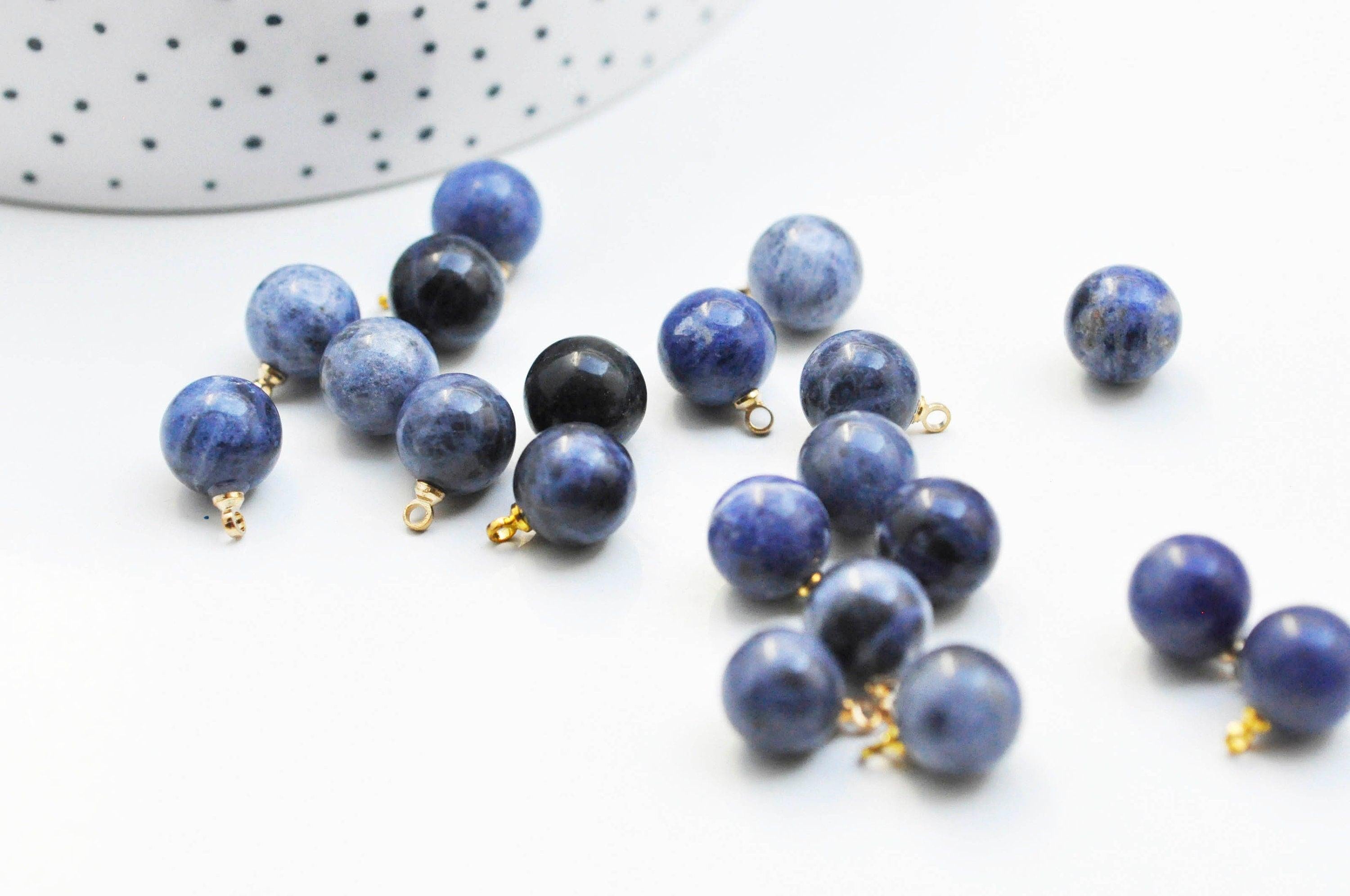 Pendentif goutte rond sodalite naturelle, support doré, création bijoux pierre naturelle, pendentif pierre naturelle, 14mm, l'unité