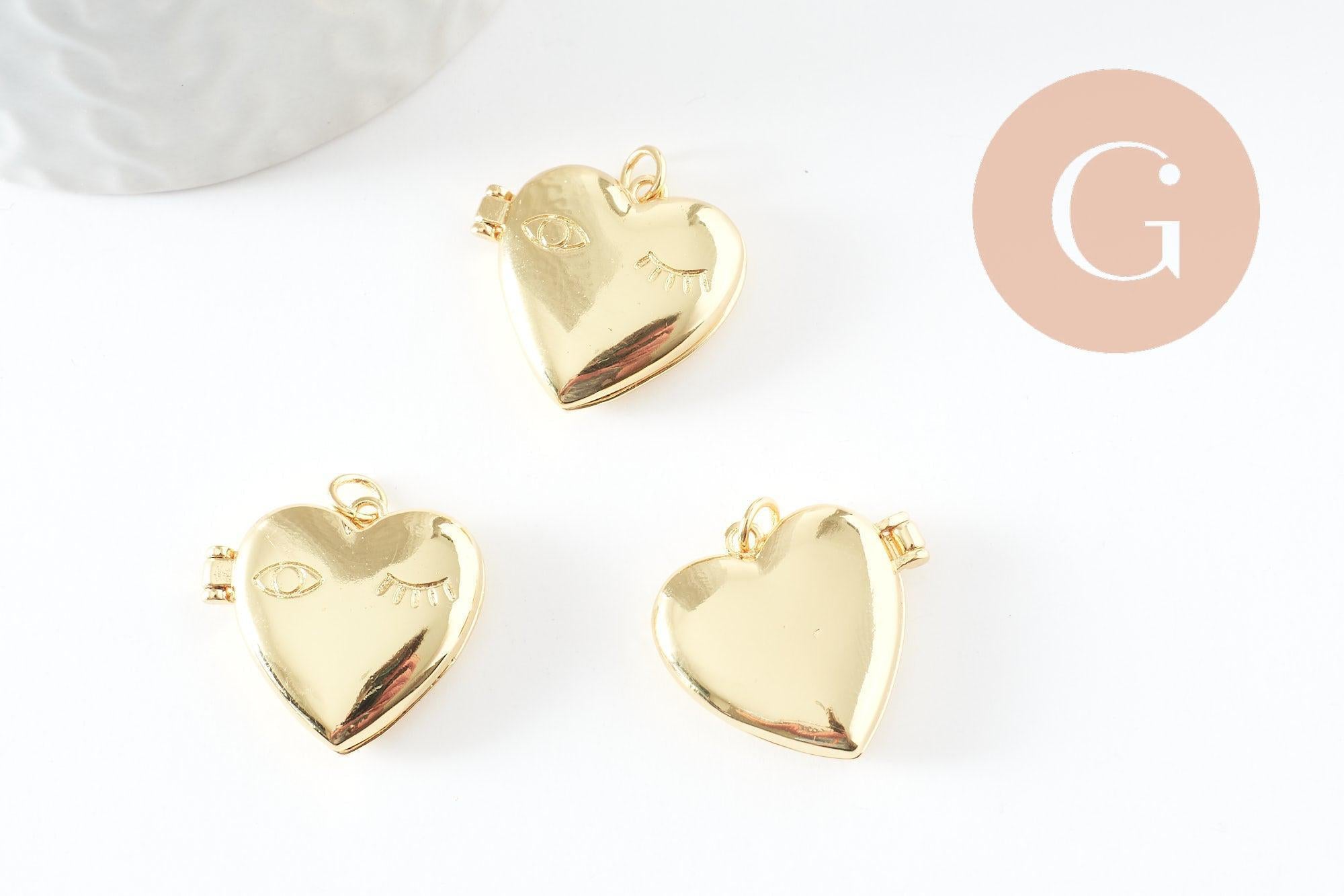 Pendentif locket cœur contemporain medaillon laiton doré 18K 21-22mm, pendentif porte-photo x1 G9549