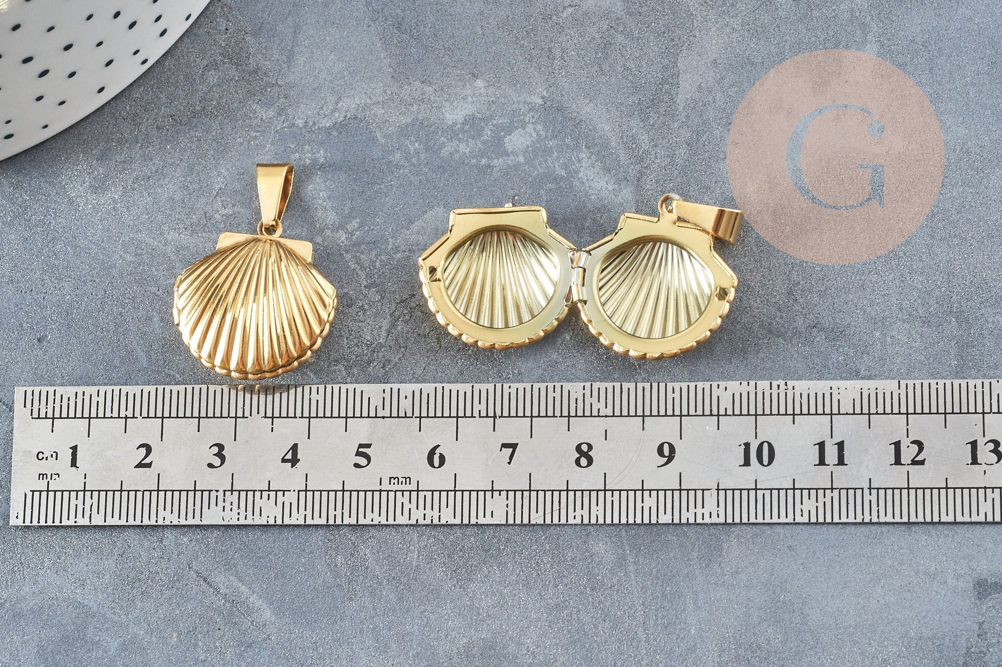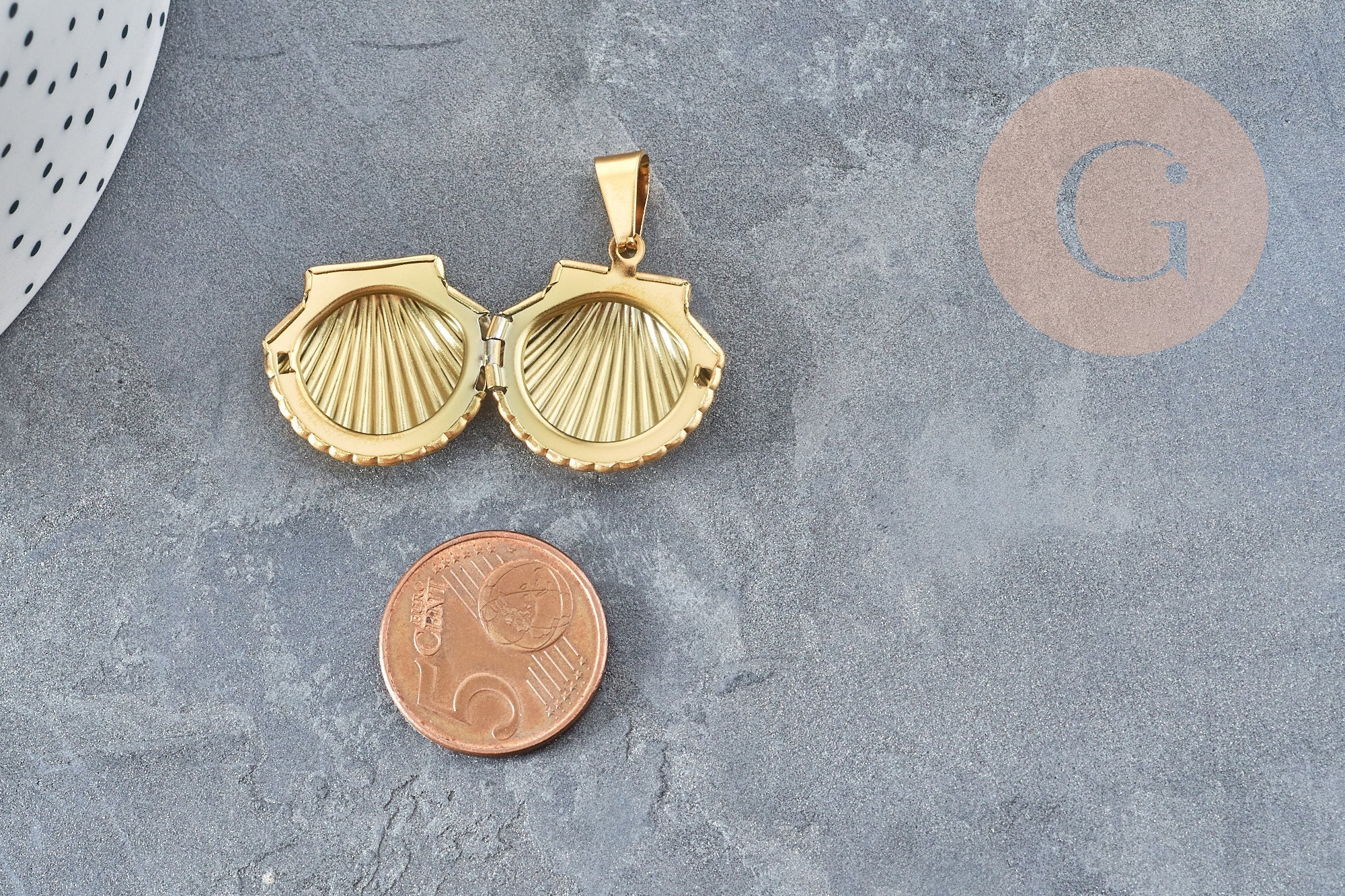Plongez dans l'essence apaisante de l'océan avec ce magnifique pendentif locket en forme de coquillage. Fabriqué à partir d'acier inoxydable doré 18K, ce pendentif allie style et durabilité pour vos créations de bijoux.