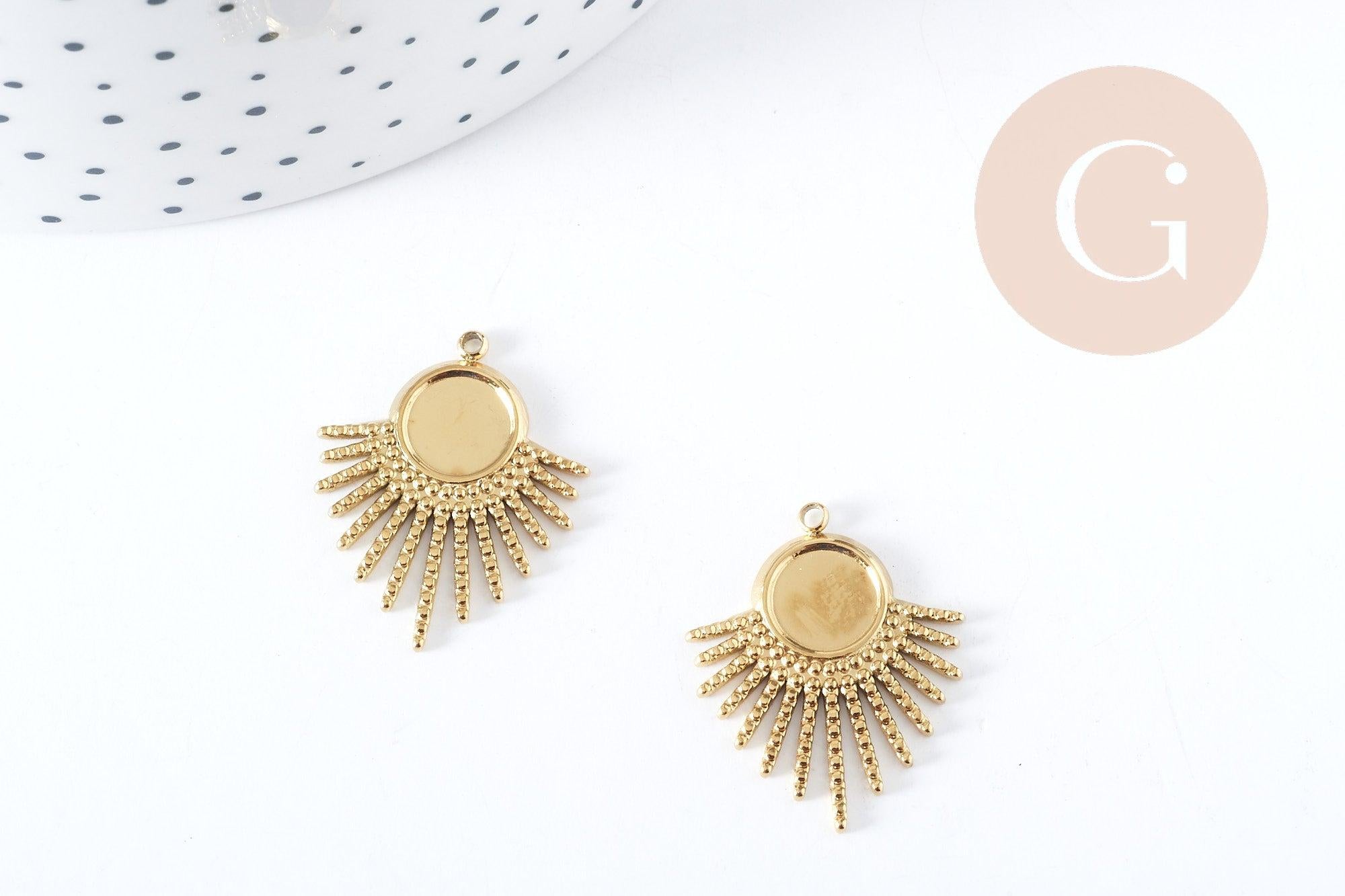 Craquez pour ce magnifique pendentif support cabochon en acier 304 inoxydable doré qui vous permettra de fabriquer de jolis pendentifs chics. Représentant quelques rayons de soleil, vous pouvez réaliser un bijou fantaisie mystique.