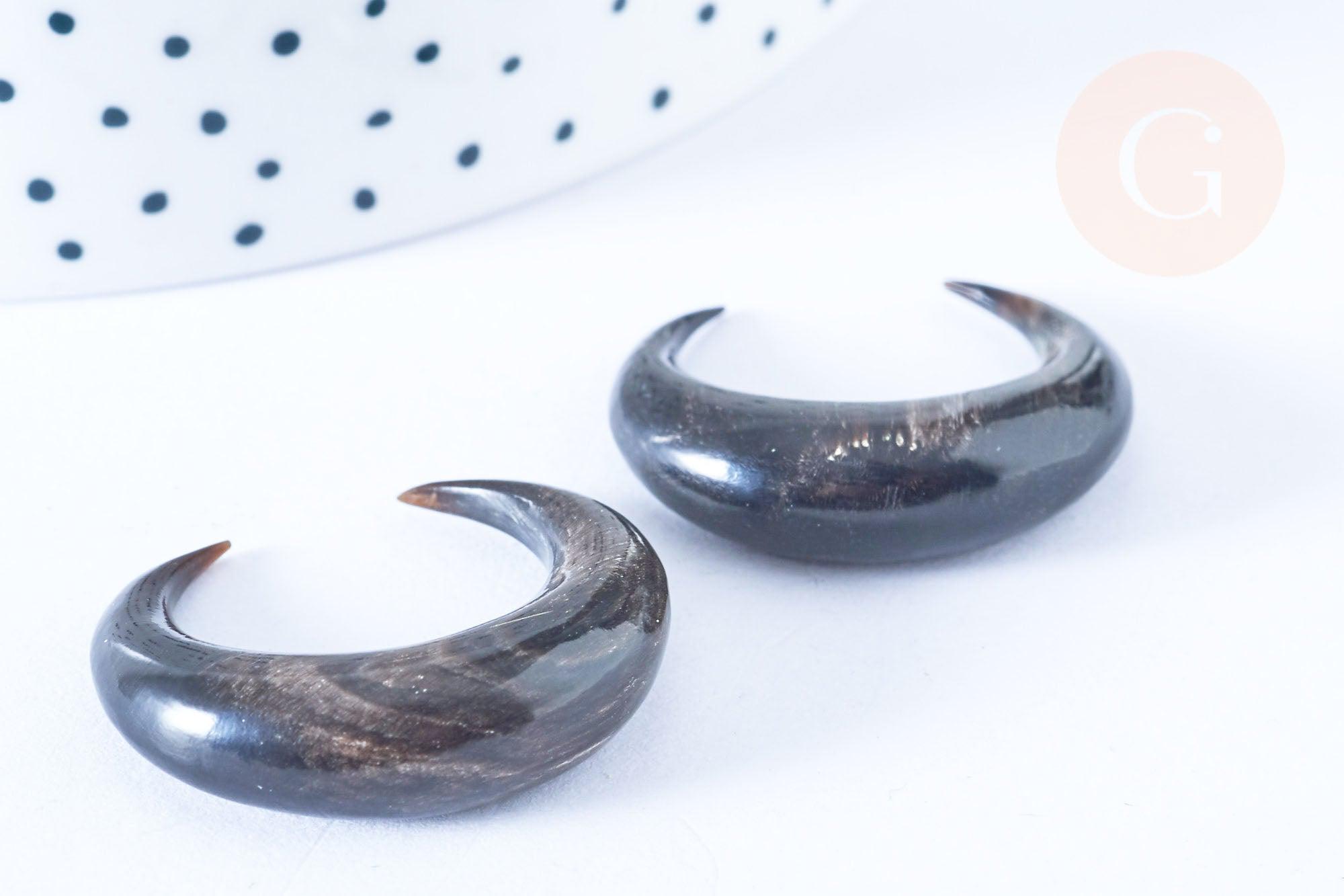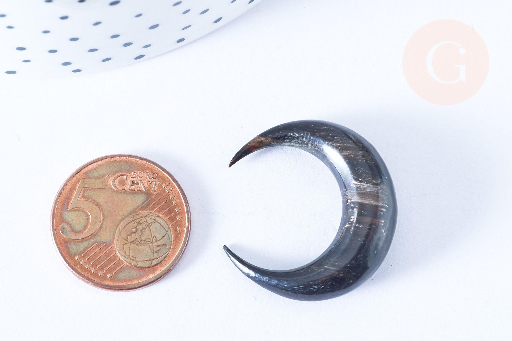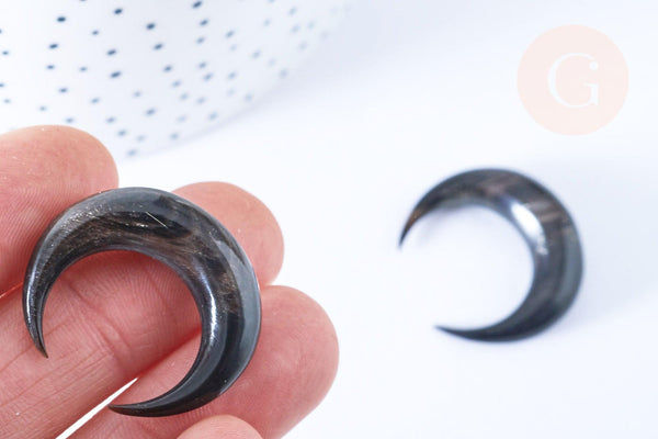 Pendentif Lune corne noire naturelle 37x8mm, pendentif lune en corne naturelle noire, piercing écarteur corne naturelle x1 - G6477