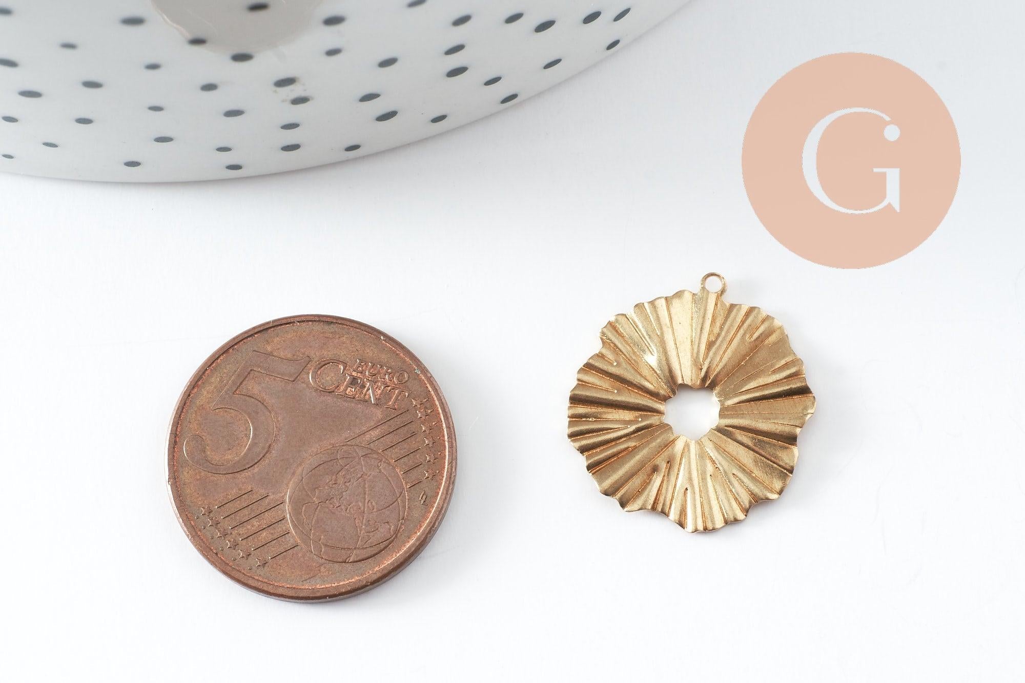 Pendentif médaille cerle oeil laiton brut,apprêt doré, sans nickel,médaille dorée,laiton brut, médaille ronde,15mm,lot de 5