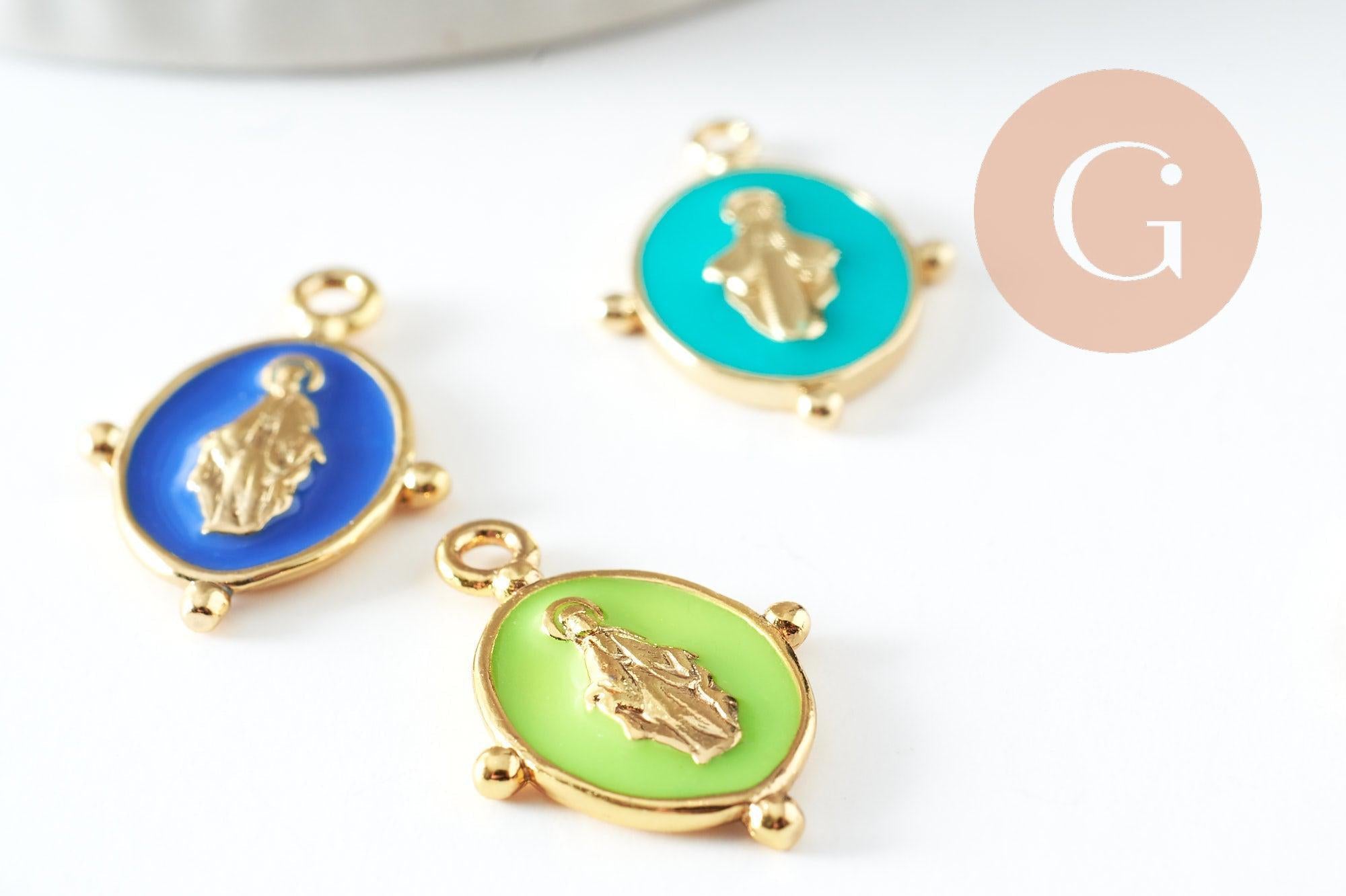 Craquez pour cette médaille ovale en laiton doré et émail pastel - couleur mixte. Celle-ci représente la Vierge Marie, signe religieux et de protection.