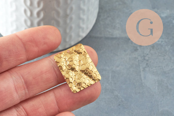 Pendentif médaille rectangle martelée laiton brut, apprêt doré, sans nickel,médaille dorée,laiton brut,25mm, X2 (G1189)
