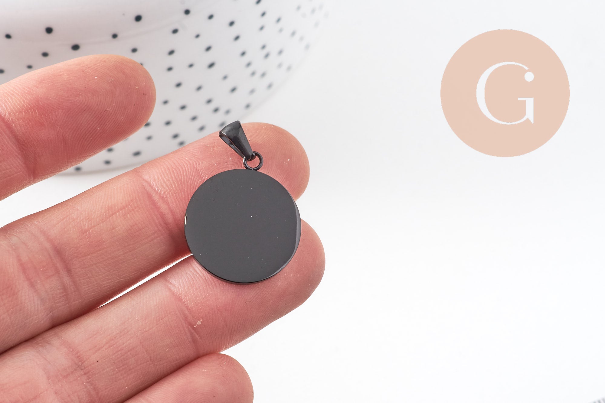 Ce pendentif médaille ronde en acier inoxydable 304 IP noir opaque séduira les créatrices en quête d’un style moderne et minimaliste. Sa surface lisse et sombre, rehaussée par un polissage manuel, en fait une base élégante pour imaginer des bijoux personnalisés. Polyvalent et résistant, il s’associe parfaitement à des chaînes acier, des cordons ou des compositions plus élaborées.