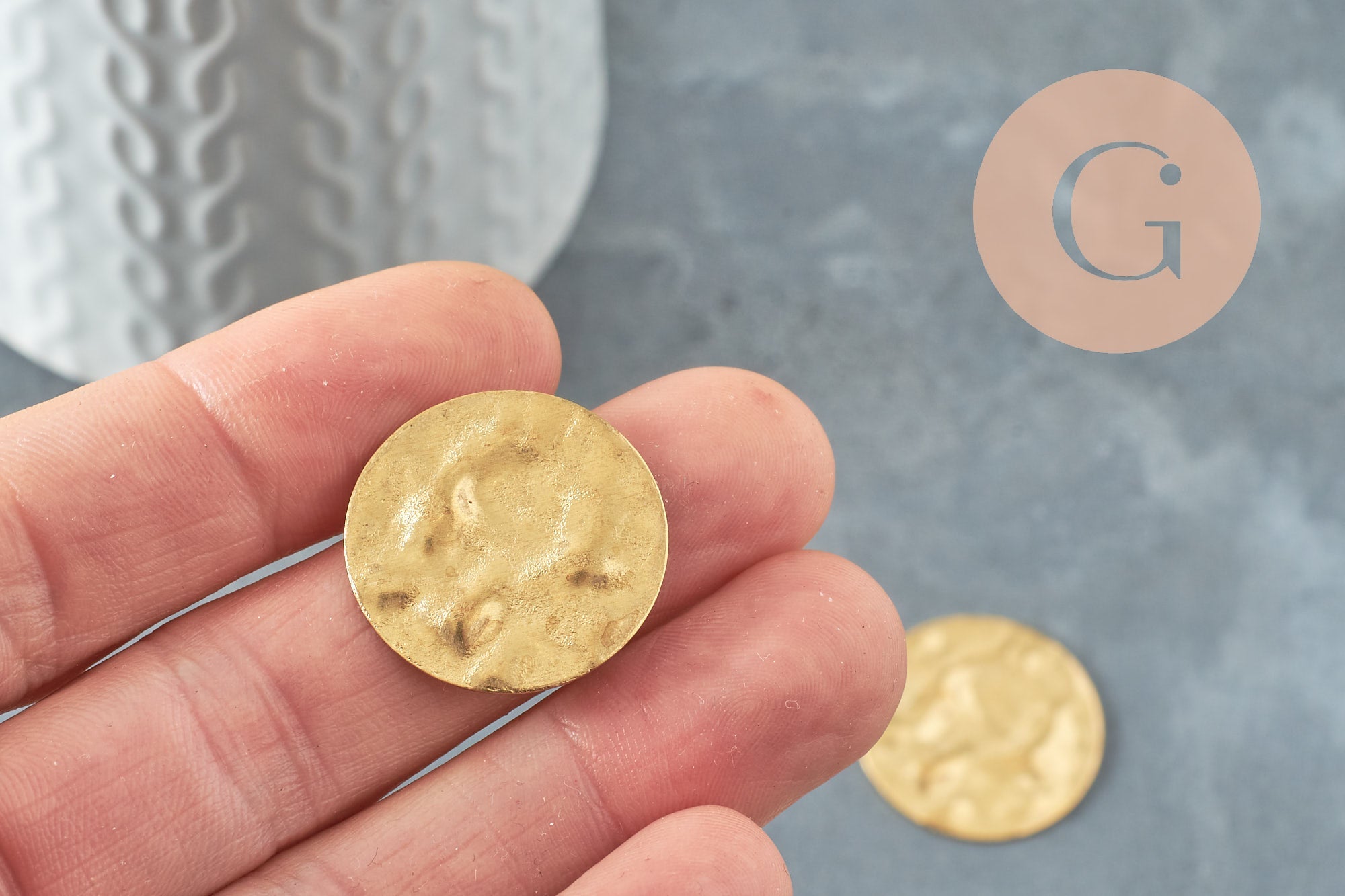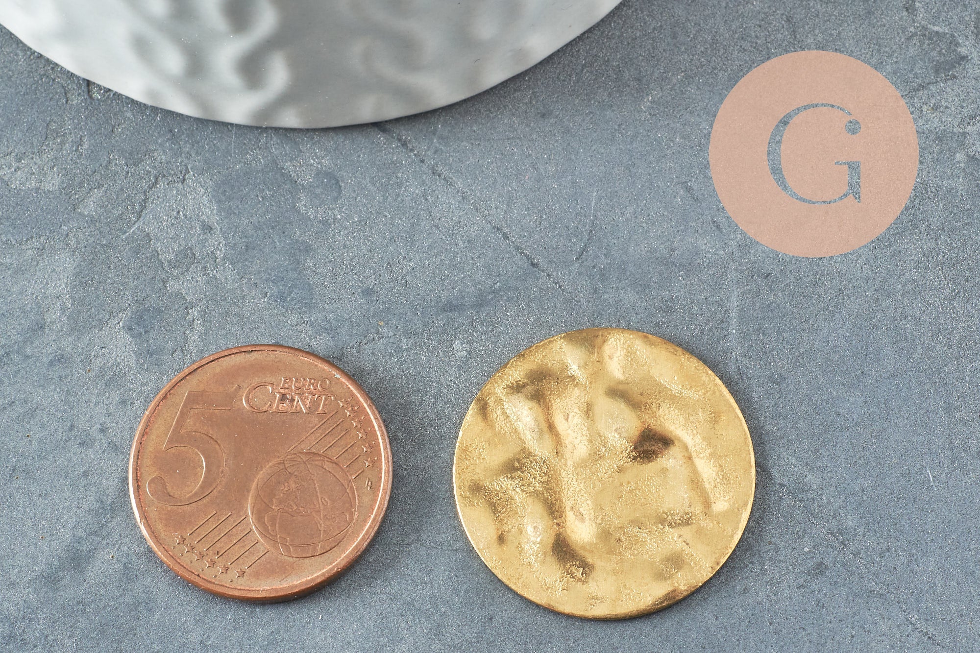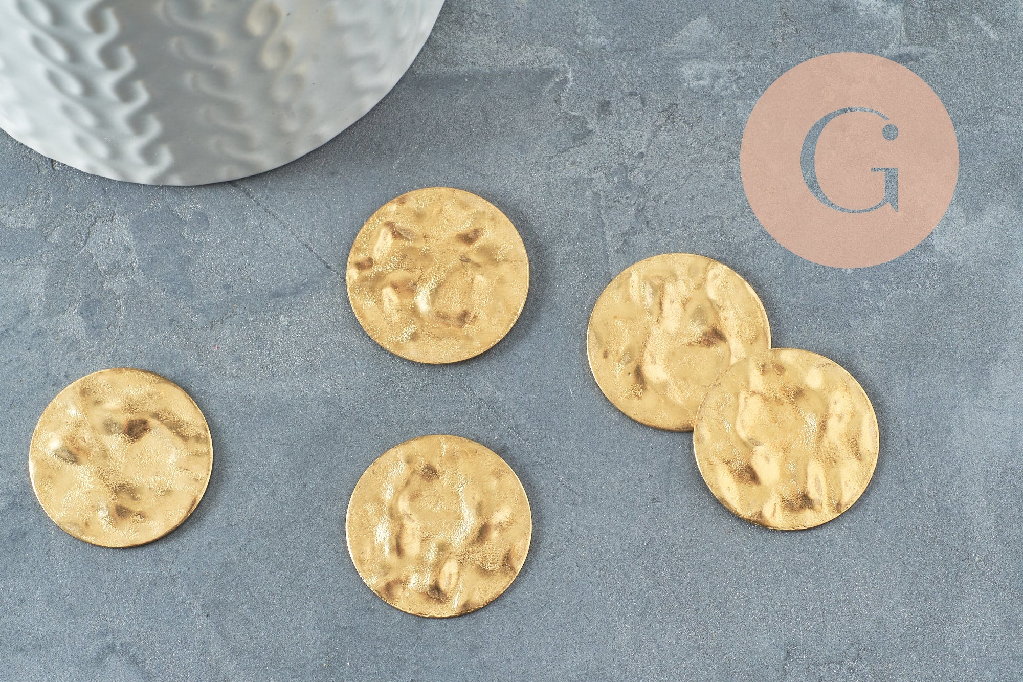 Pendentif médaille ronde martelée laiton brut, apprêt doré, sans nickel,médaille dorée,laiton brut, médaille ronde,24mm,lot de 5