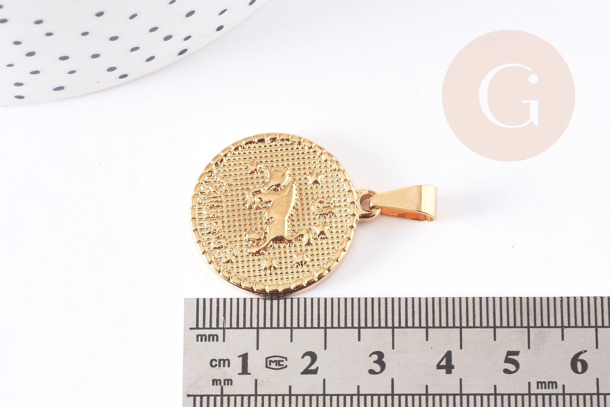 Pendentif médaille ronde Taureau acier doré,signe astrologique, pendentif doré,sans nickel,acier doré, création bijoux,médaille or,2.9cm