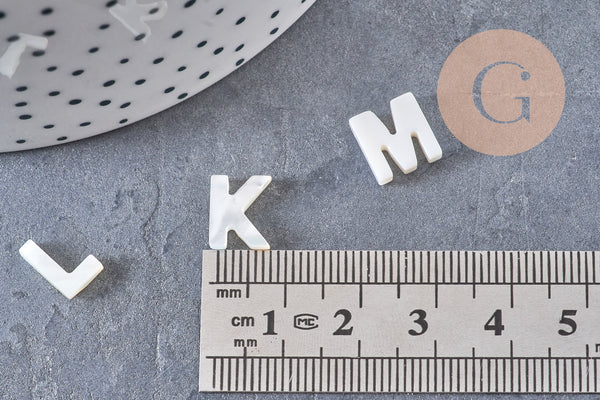 Ces perles lettres en nacre blanche naturelle sublimeront vos créations en leur apportant une touche douce, lumineuse et très personnelle. Chaque lettre, taillée dans la nacre et percée en haut de la tranche, permet d’initialiser un prénom, un mot symbolique ou encore un message secret au cœur de vos bijoux.