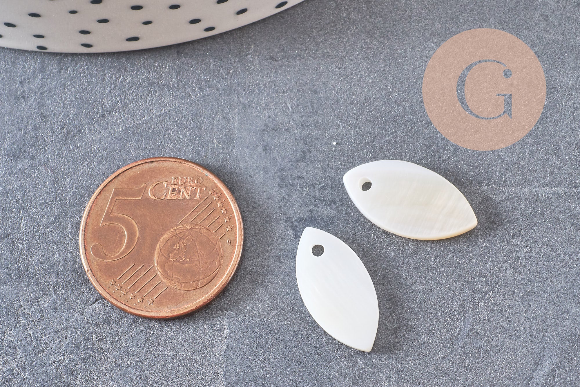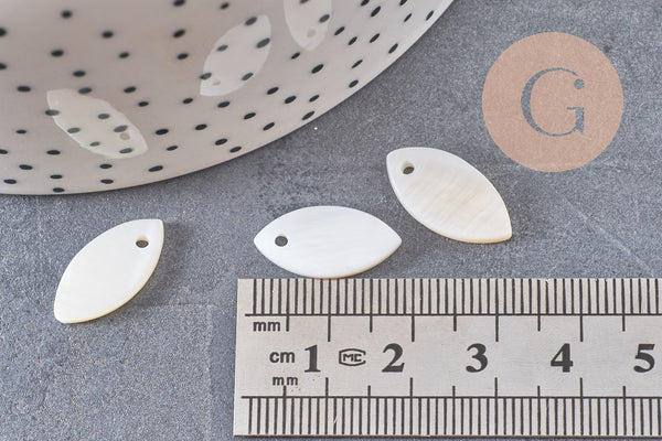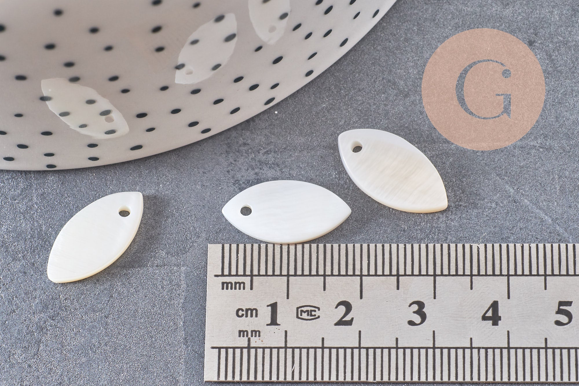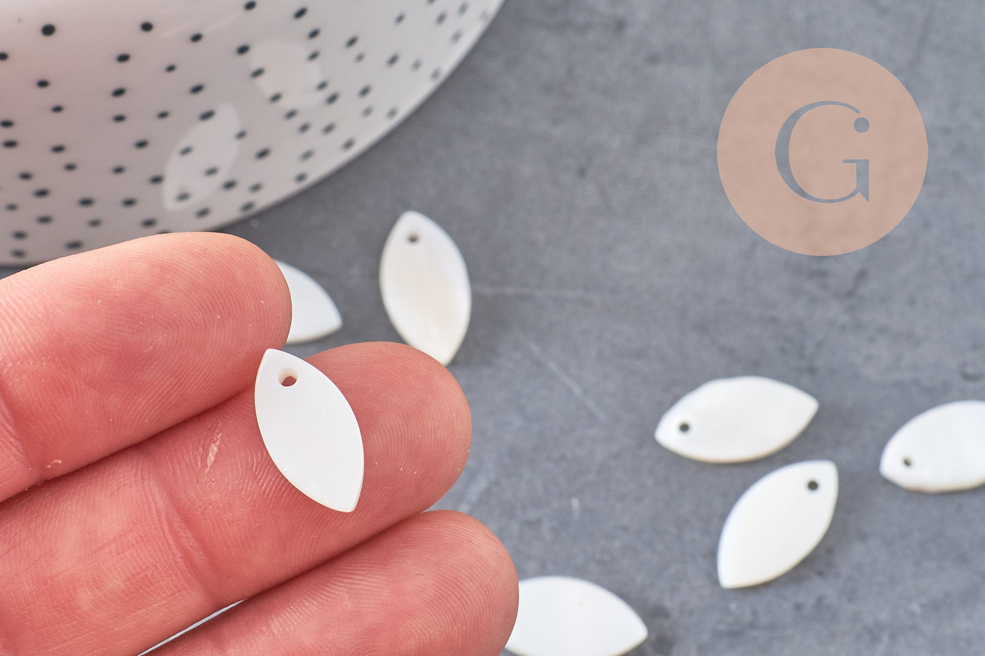 Pendentif navette nacre blanche naturelle,fourniture créative, perle ovale,nacre naturelle,navette nacre,coquillage blanc,création bijoux,18mm,lot de 10