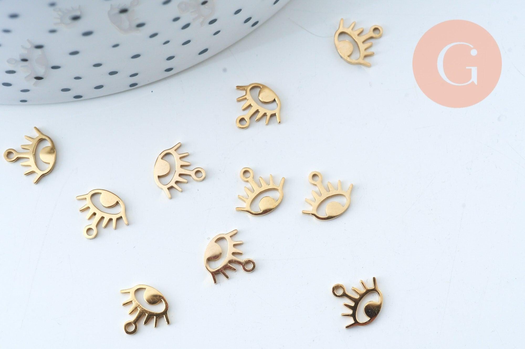 Pendentif oeil acier doré inoxydable 8.5mm, un joli pendentif pour la création de bijoux DIY, x1 G6037