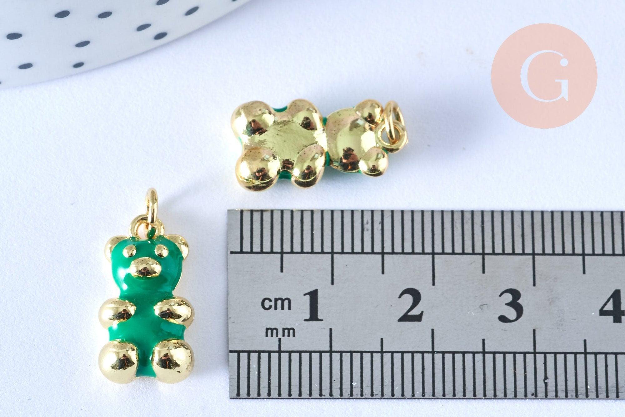 Pendentif ourson laiton doré 18K résine vert 17.5mm, pendentif laiton jouet, bijou d'enfance, x1 G6593