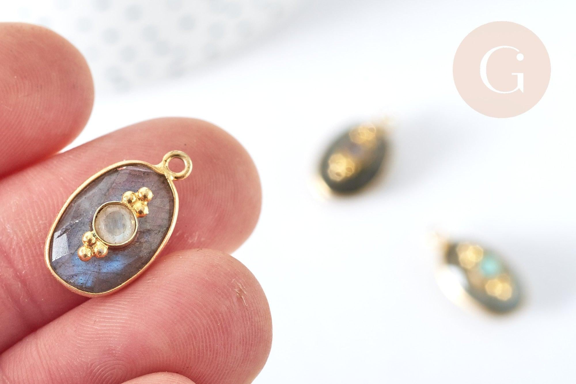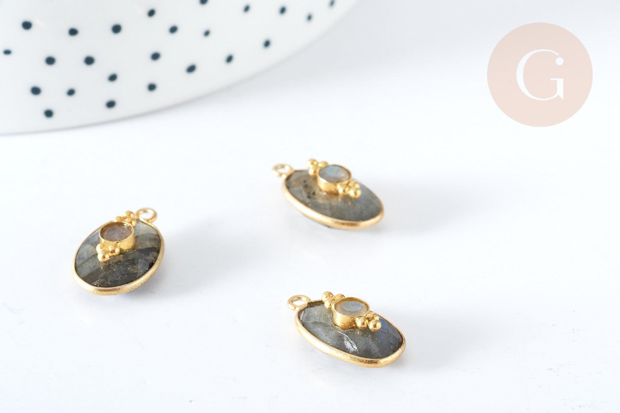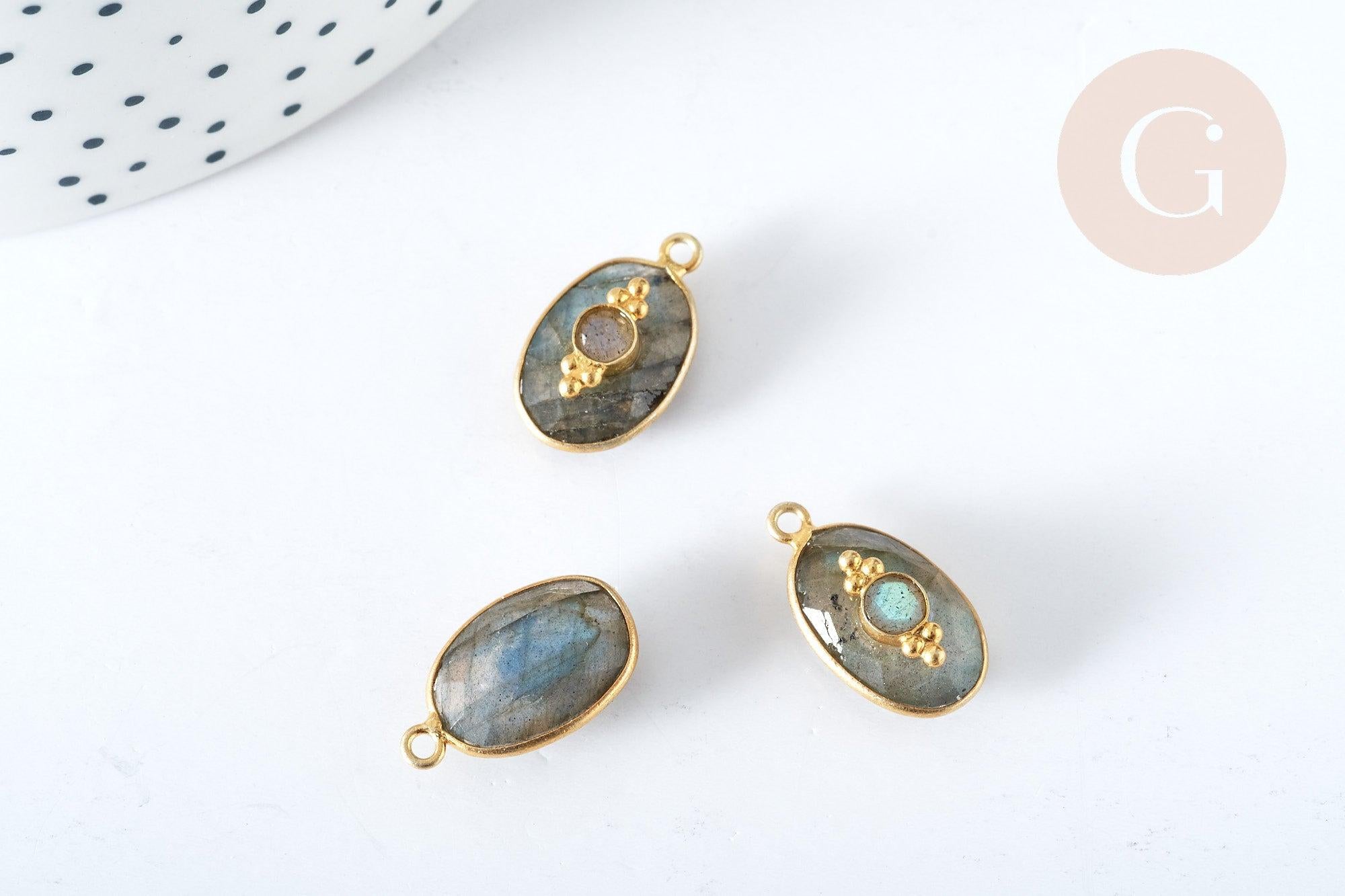 Pendentif ovale amulette labradorite argent 925 doré 18K 30mm, pendentif pierre naturelle, x1, G7714