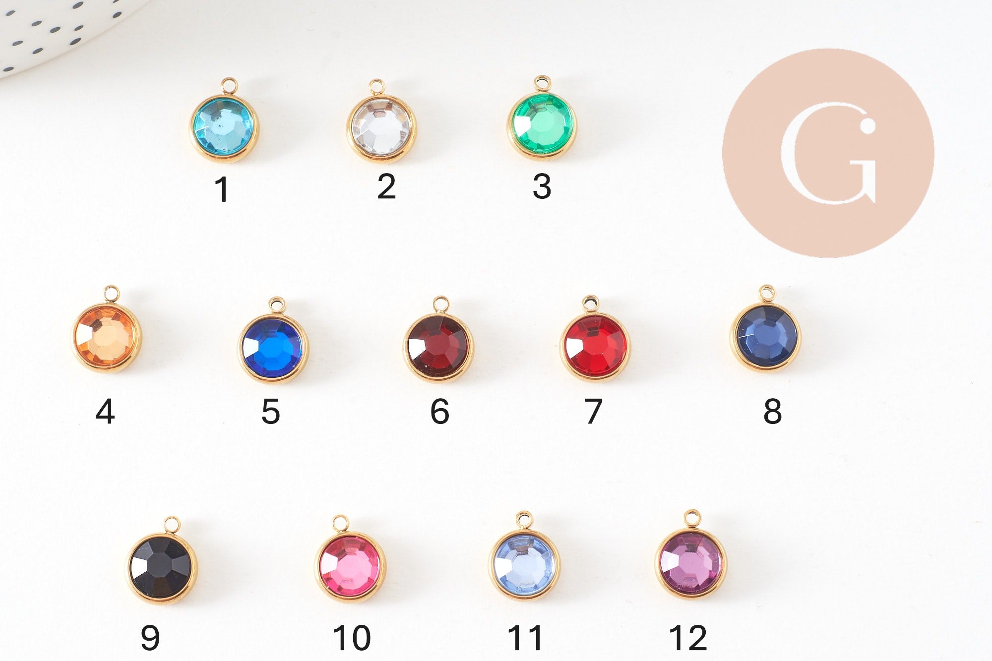 Apportez une touche précieuse et personnalisée à vos bijoux avec ce pendentif pierre facettée montée sur acier inoxydable doré. Chaque pendentif représente une pierre de naissance colorée, idéale pour offrir un bijou symbolique ou créer une pièce unique.