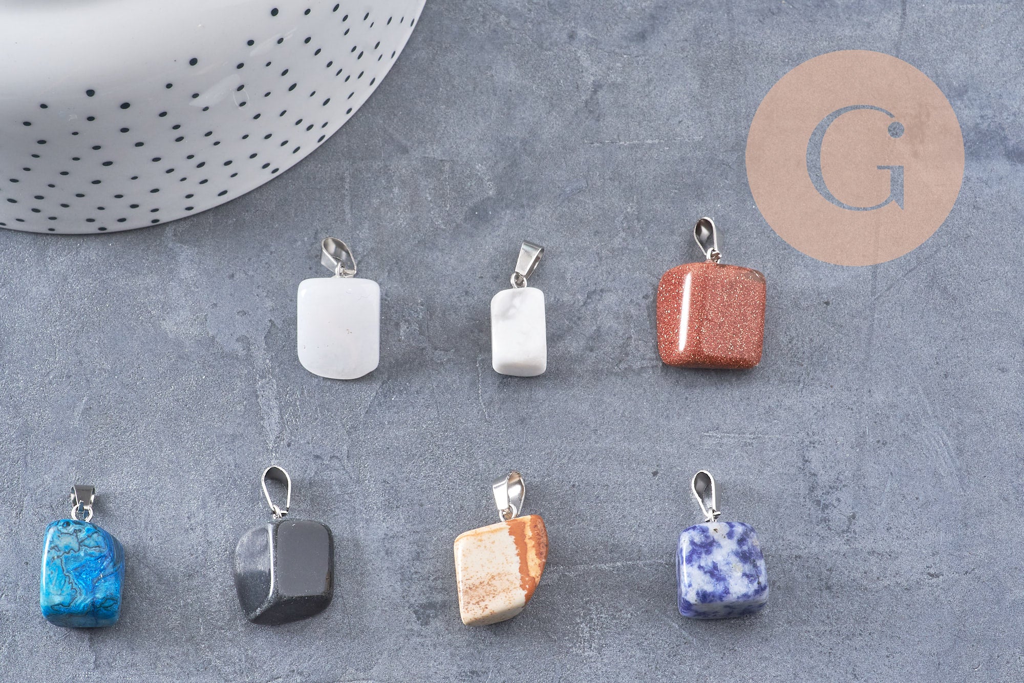 Choisissez votre bonheur de pendentif en pierre naturelle, de forme et couleur variée, afin de réaliser de beaux bijoux fantaisie DIY.