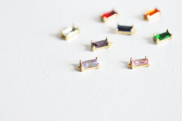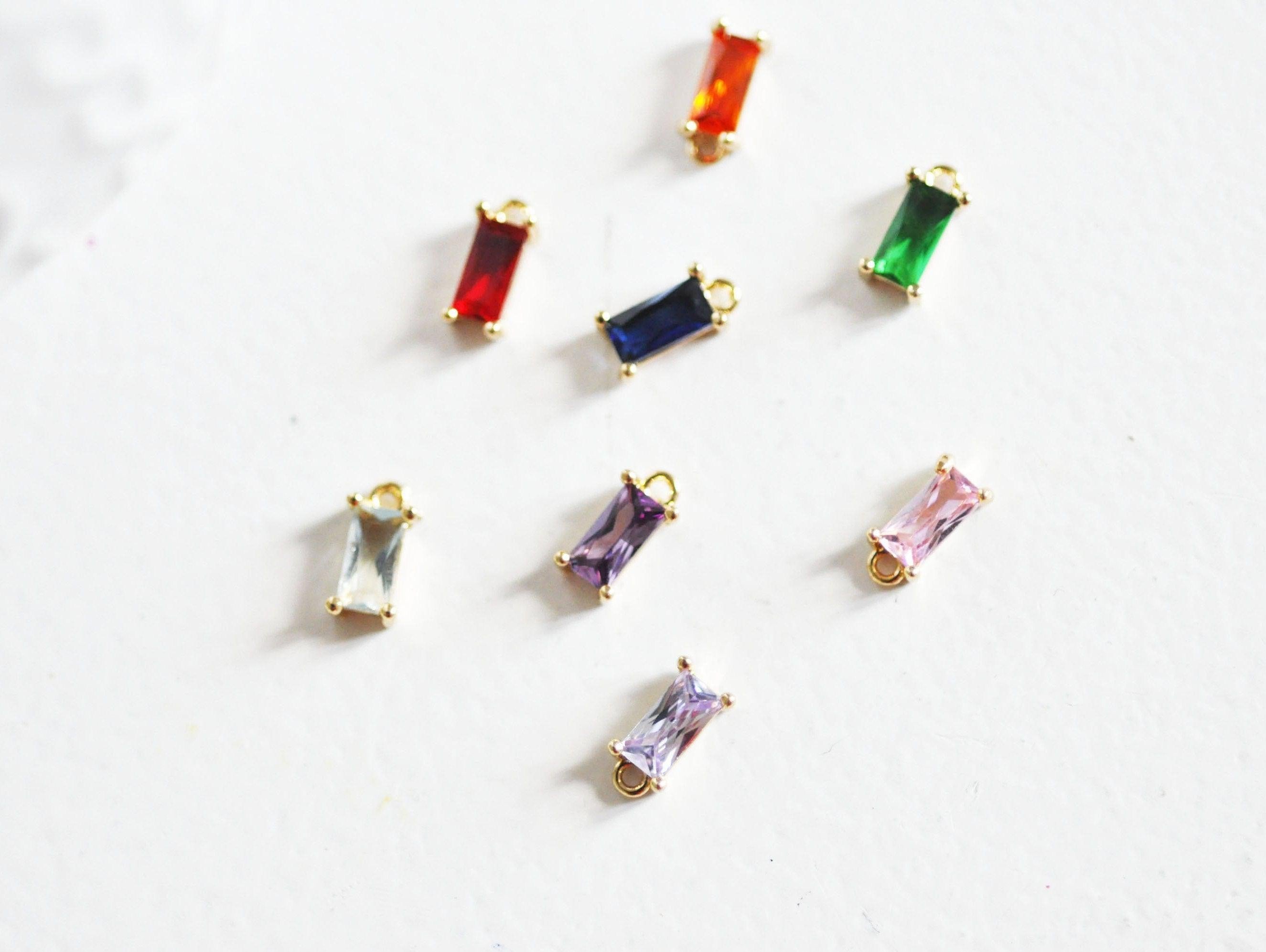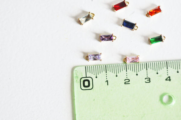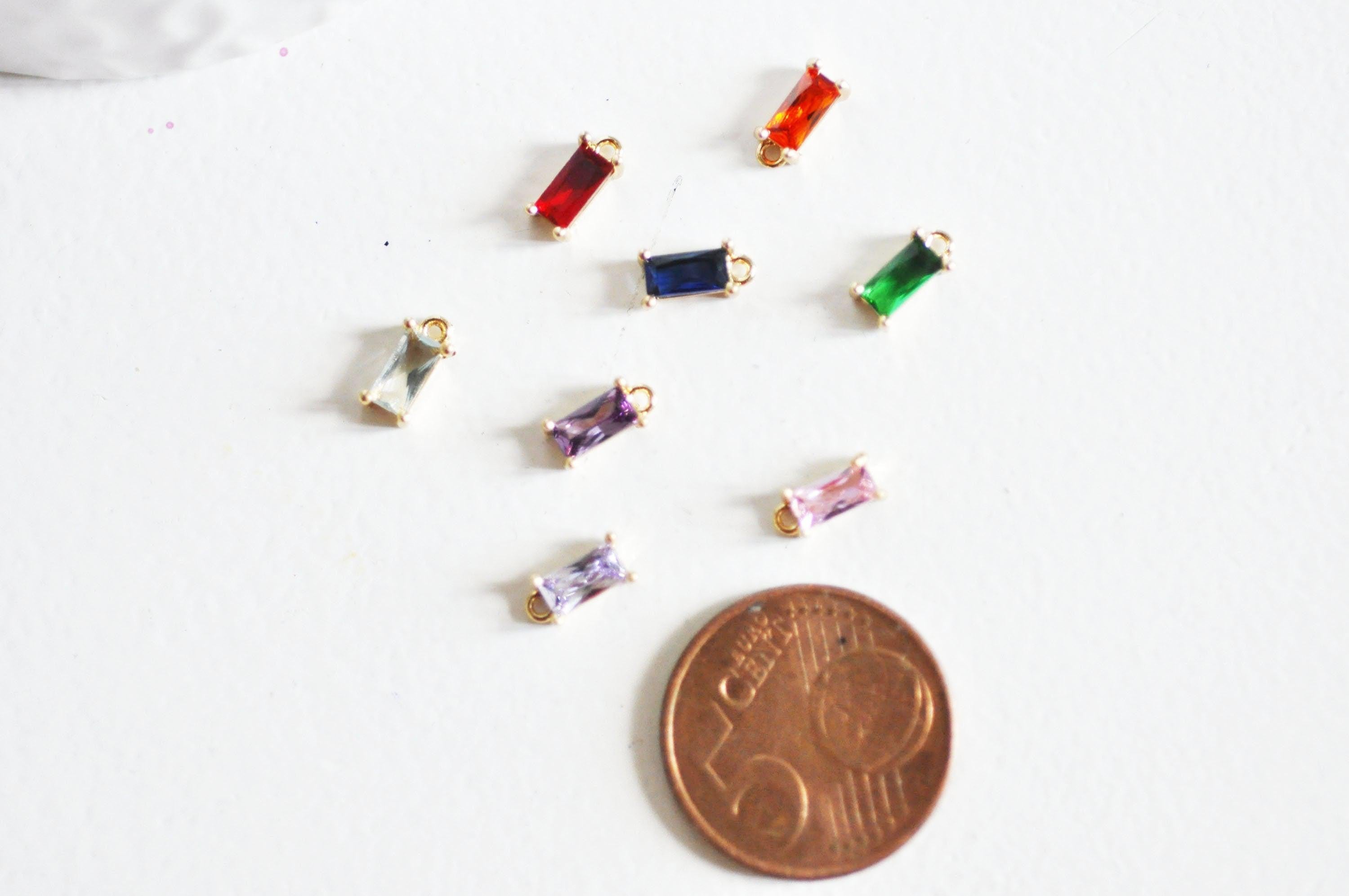 Pendentif rectangle doré 24 carats zircon multicolore,pendentif cristal, pendentif doré cristal, création bijoux,4x9mm, x10 (G3232)