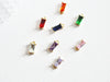 Craquez pour ces jolis pendentifs rectangulaires en cristal de différentes couleurs, cerclé de laiton doré 24 carats.