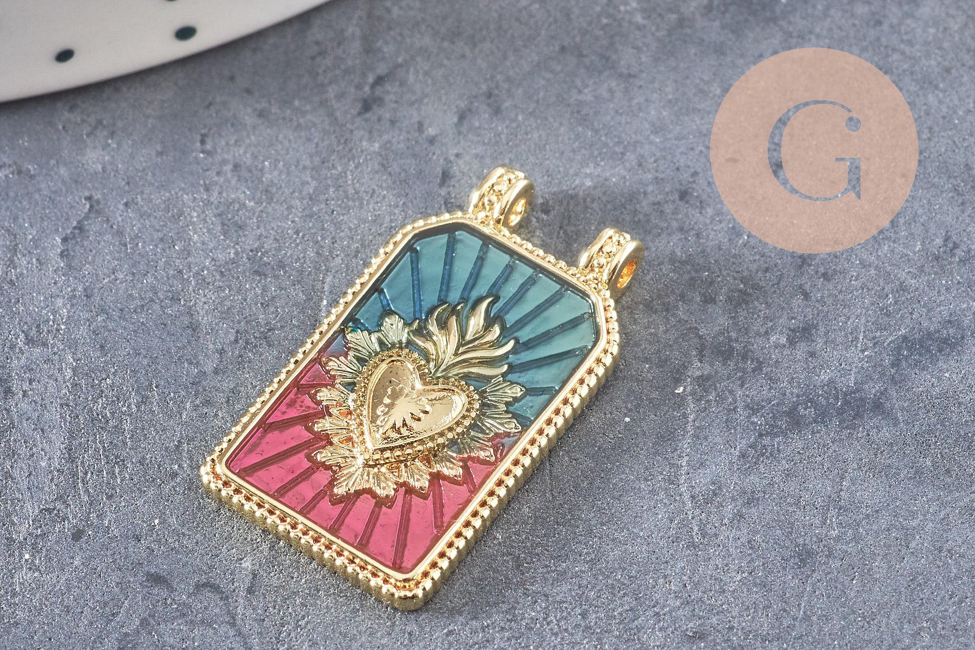 Apportez une touche mystique et colorée à vos créations avec ce pendentif rectangulaire en laiton doré 18K, orné d’un motif émaillé de cœur sacré. Inspiré des talismans spirituels, ce bijou unique et symbolique donnera caractère et profondeur à vos créations DIY.