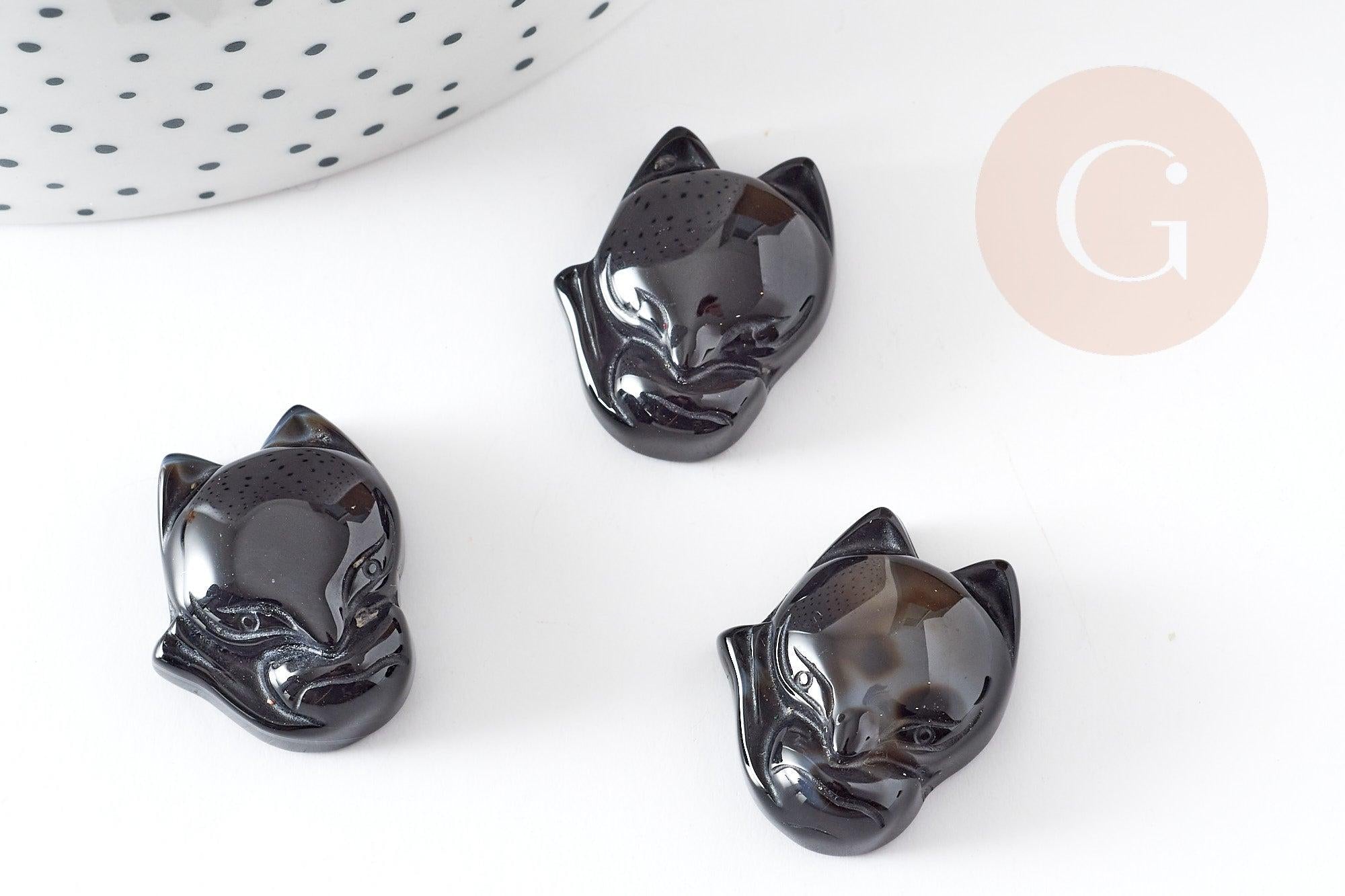 Craquez pour ce pendentif en agate naturelle teintée en noir, en forme de renard
